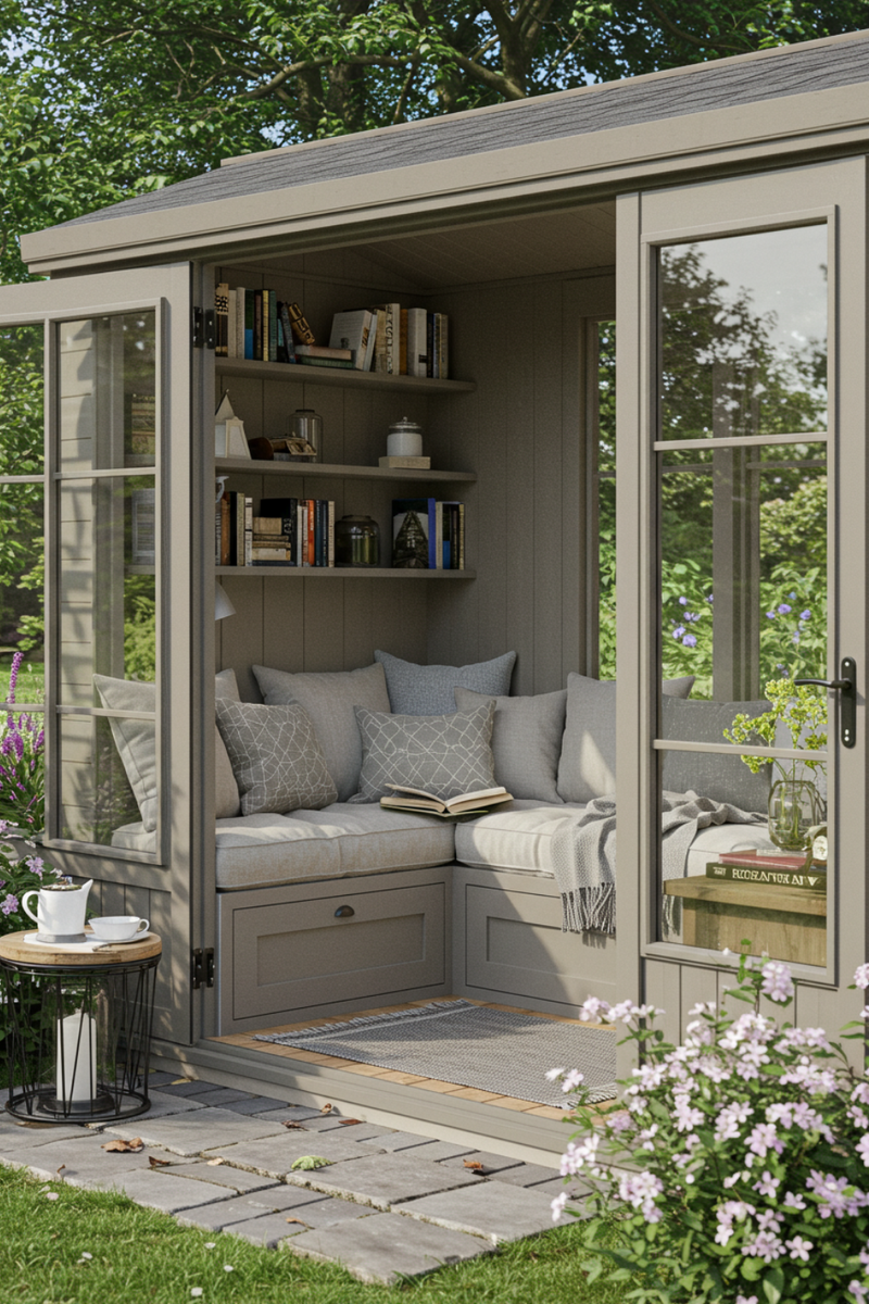 Представьте, как удобно уютно устроиться с книгой в небольшом доме, предназначенном только для чтения. Мягкие подушки, тёплые пледы и книжные полки создают идеальную атмосферу. Большие окна впускают свет и открывают невероятные виды на природу.