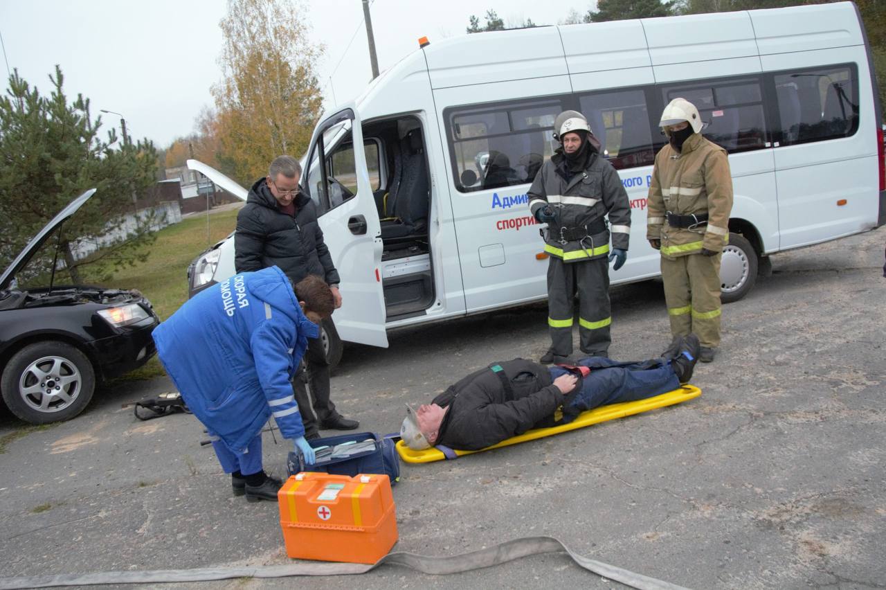 Сегодня, в рамках третьего дня учений, участники отработали действия при смоделированном дорожно-транспортном происшествии. По замыслу тренировки, из-за неблагоприятной погоды и несоблюдения правил дорожного движения столкнулись автобус и легковой автомобиль.