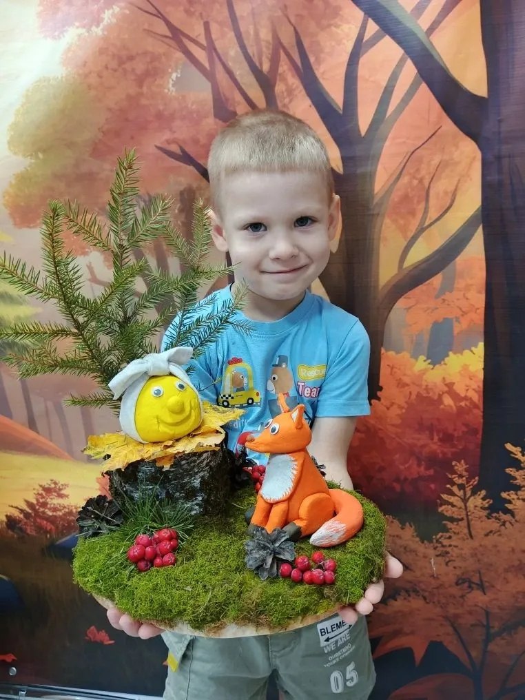 Традиционно в нашем детском саду проводятся выставки детского творчества. Не прошла стороной, и чудесная пора Осени, которая вдохновляет своей яркостью и пестротой красок на воплощение прекрасных творческих идей. В стенах детского сада была оформлена выставка поделок из природного материала "Сказочный герой осени".