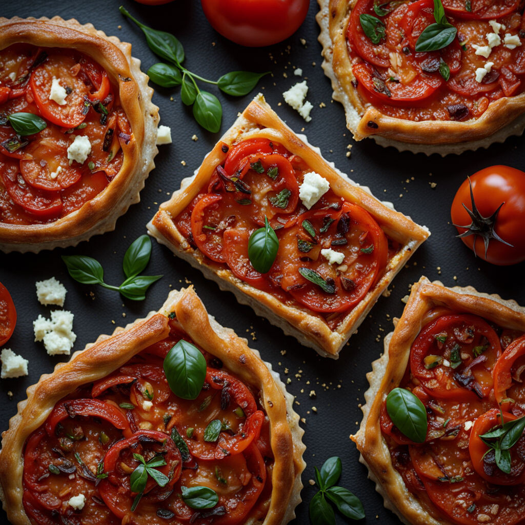 - Томатный тарт с карамелизированным луком и фетой: Песочное тесто в сочетании с нежным карамелизированным луком и свежими помидорами создаёт гармонию вкусов. Добавление феты придаёт блюду необходимую пикантность.