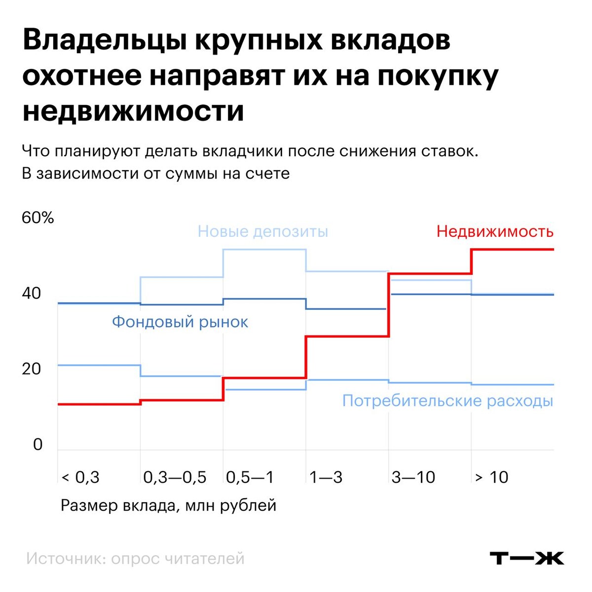 Интересно, что стратегия инвестиций значительно меняется в зависимости от объема накоплений. В частности, люди, имеющие более 3 миллионов рублей, в большинстве случаев готовы вложить средства в недвижимость. Это объясняется тем, что недвижимость традиционно считается более надежным и устойчивым активом.