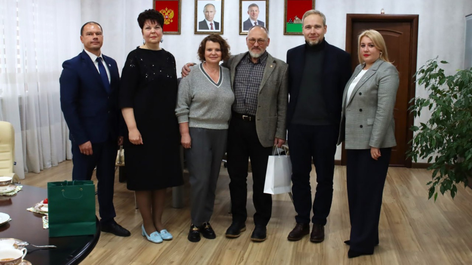 Глава города Марина Дбар провела встречу с авторами памятника братьям Ткачевым – скульптором Андреем Балашовым и архитектором Дмитрием Другановым.