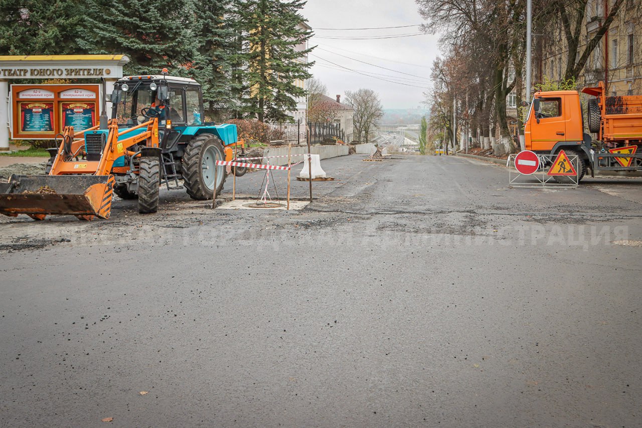 На минувшей неделе строители уложили первый слой асфальта на участке от пересечения Горького с улицами Карла Маркса и Калинина. Перед подъёмом вокруг одной из электрических опор сделана разделительная полоса. Как только строители проведут корректировку крышек люков, дорожные рабочие уложат верхний слой асфальта на проезжую часть.
