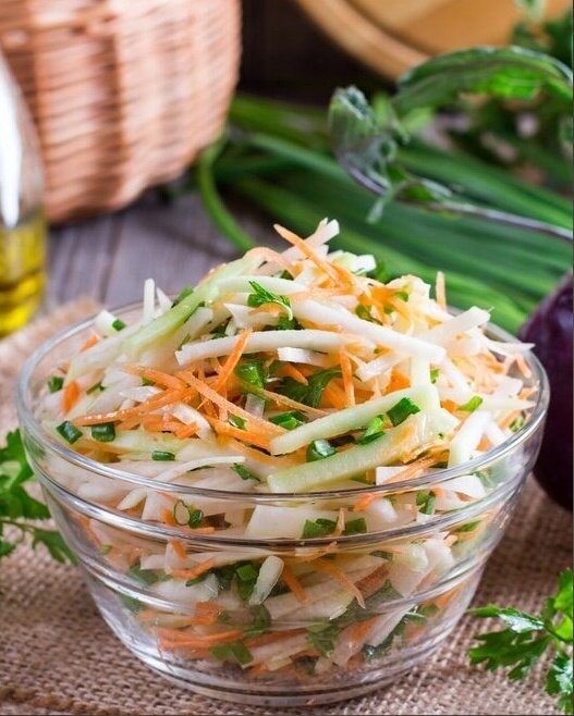 Этот свежий и расцветающий витаминный салат украсит не только ваш стол, но и поднимет настроение, сделав прием пищи по-настоящему приятным.