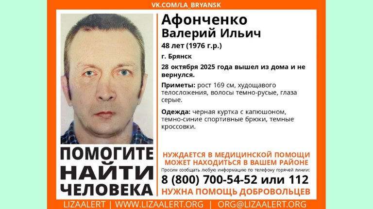 В Брянске без вести пропал 48-летний Валерий Афонченко