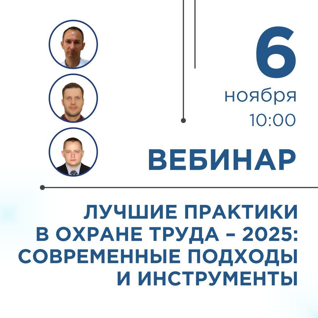 Министерство труда и социальной защиты Российской Федерации совместно с ФГБУ «ВНИИ труда» Минтруда России в рамках общественно-просветительской кампании «Здоровье. Ответственность. Труд» 6 ноября 2025 года в 10:00 по московскому времени организует проведение бесплатного обучающего онлайн-вебинара на тему: «Лучшие практики в охране труда – 2025: современные подходы и инструменты».