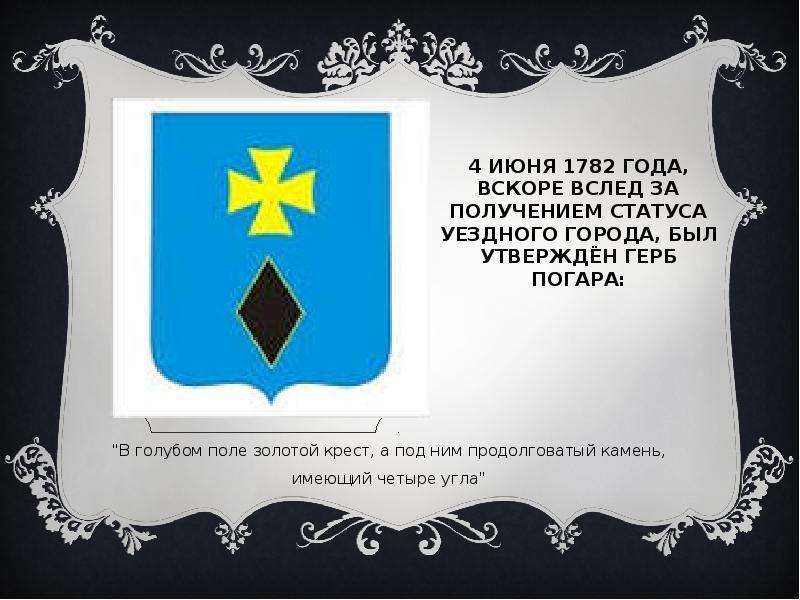 Герб поселка Погар остается неизменным с 1782 года со дня получения Погаром статуса уездного города.