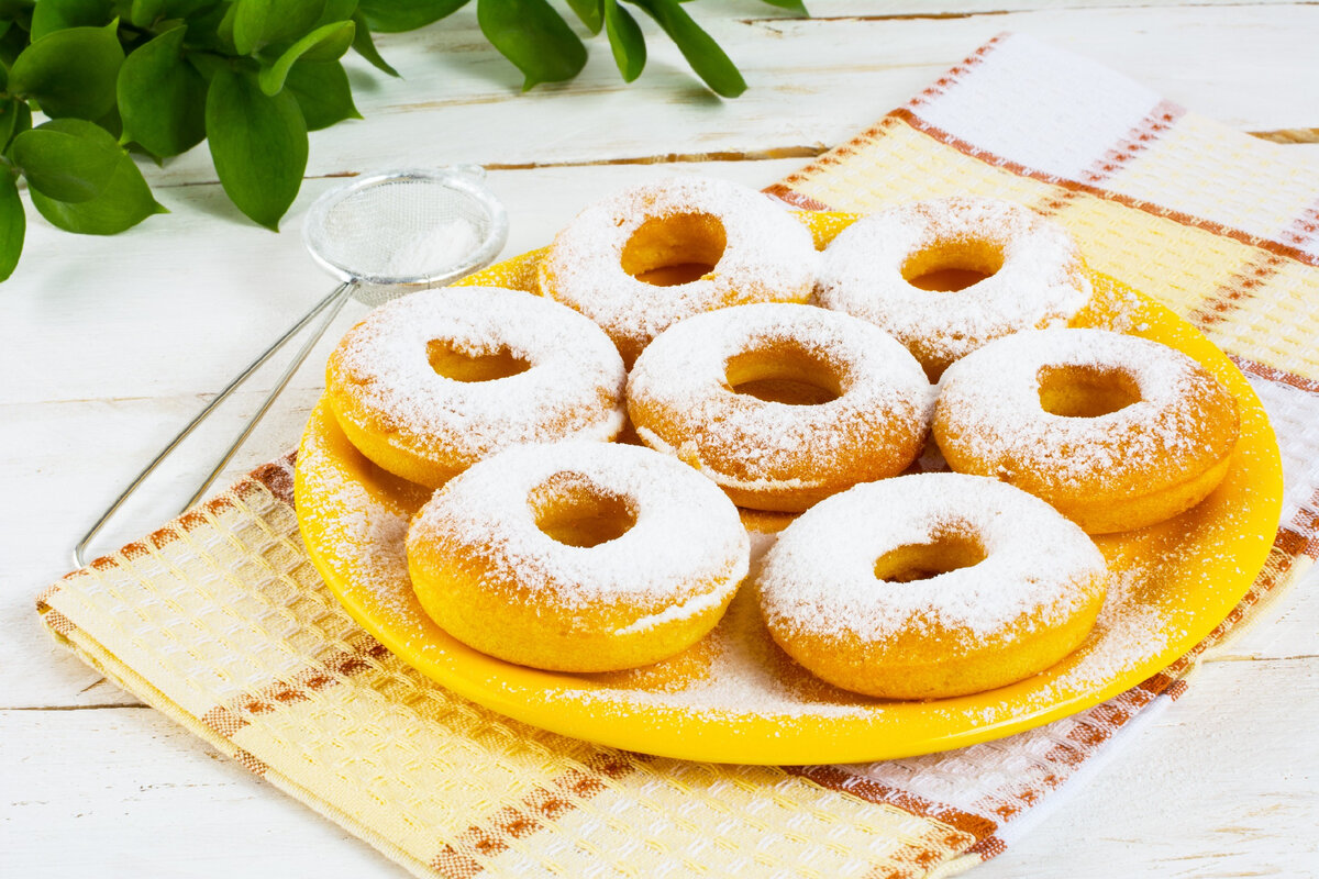 Жарьте пончики до золотистой корочки с обеих сторон, около 2–3 минут. Переложите готовые изделия на бумажное полотенце для удаления лишнего масла. Посыпьте готовые пончики сахарной пудрой и подавайте на стол — получившееся лакомство вы не забудете никогда!