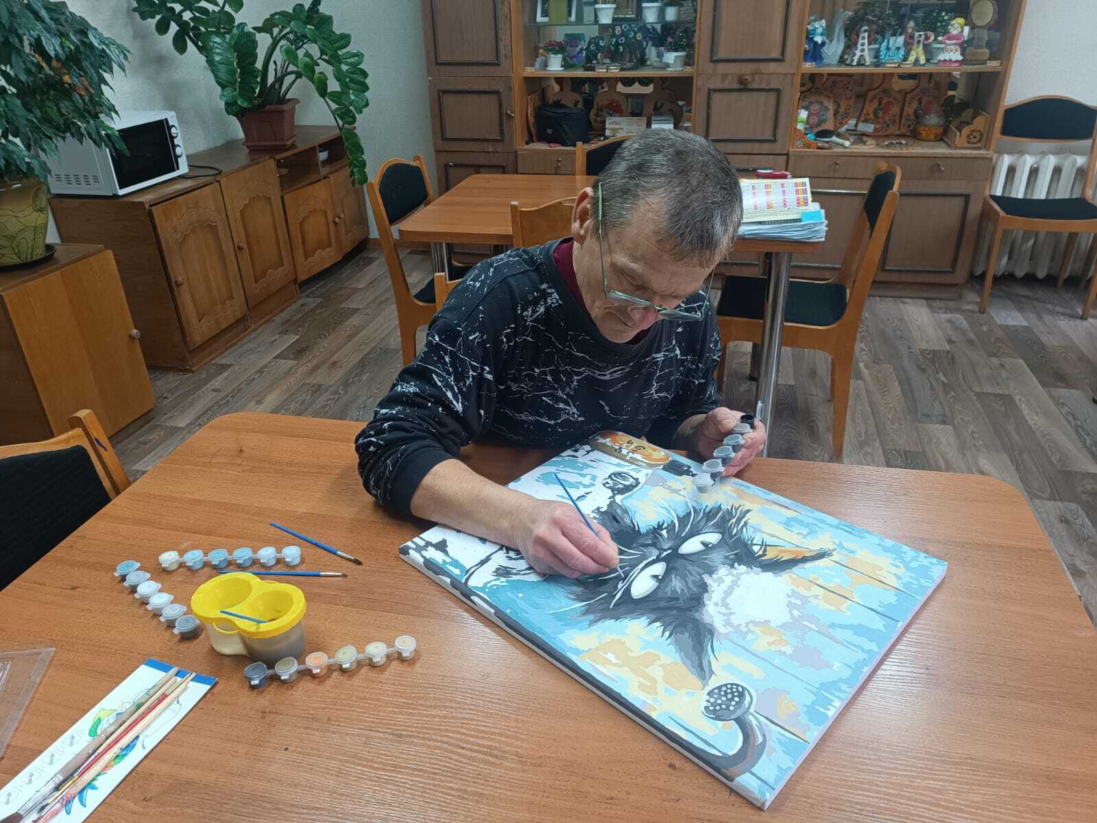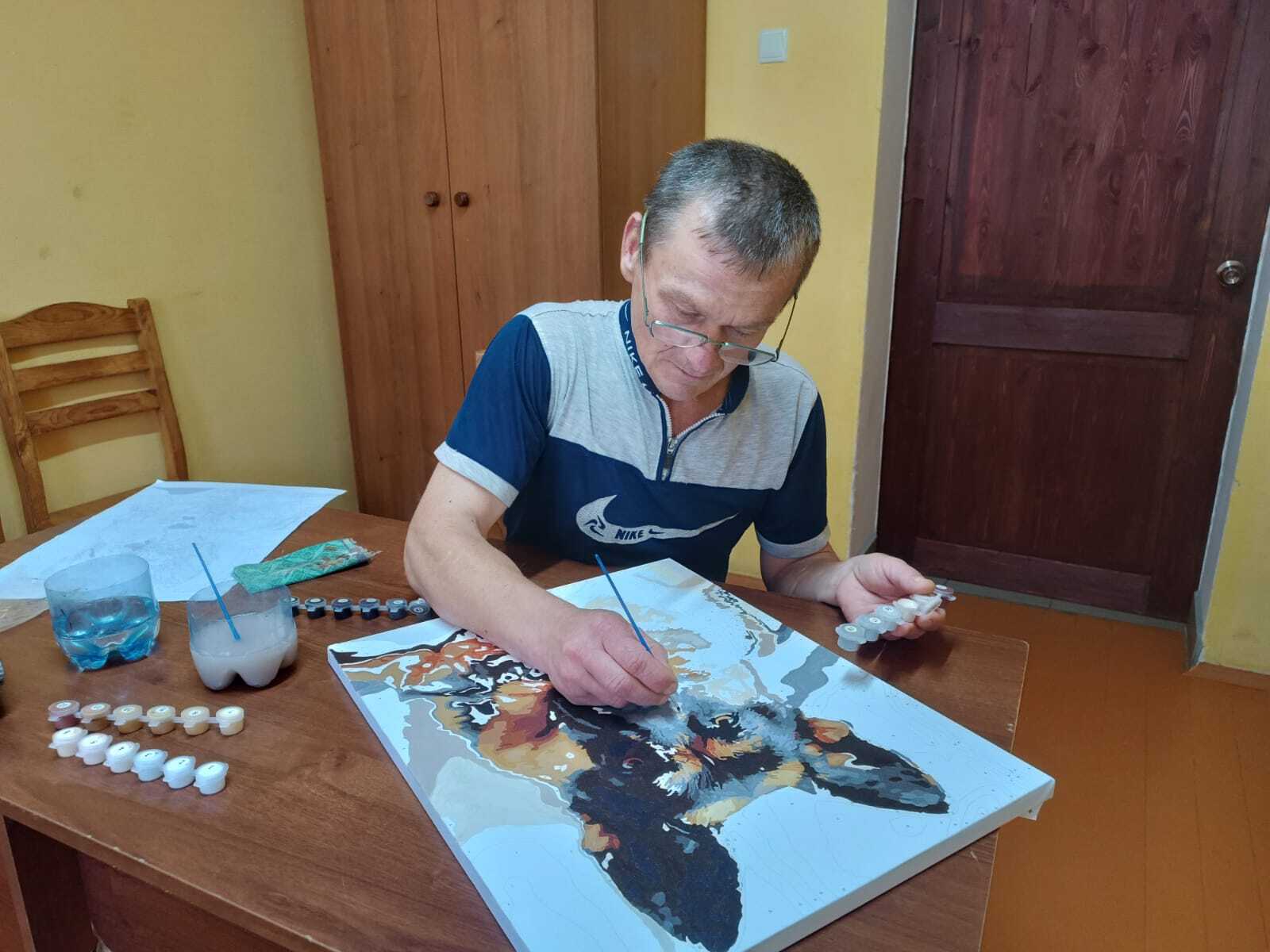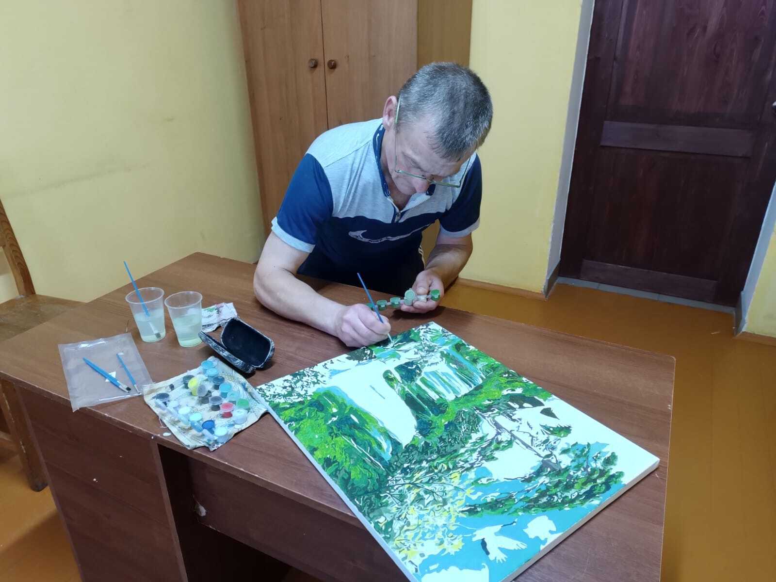 Своими собственными руками он создаёт шедевры в технике "рисования по номерам !" Ведь благодаря таким картинам у него проявляется любовь к творчеству, и вера в свои силы. А его работы всегда участвуют в выставках интерната. Желаем Василию дальнейших творческих успехов !
