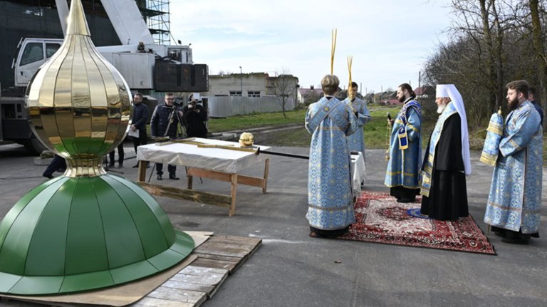 На храме в приграничном брянском селе Селечня освятили купола и крест
