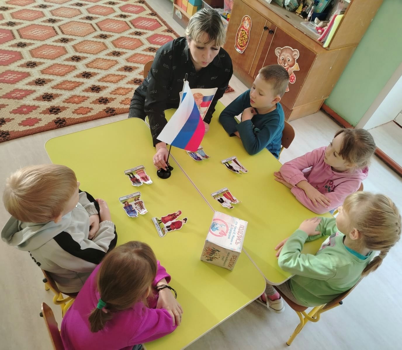 Воспитанники закрепили свои знания об истории возникновения праздника, подвигах наших предков во имя независимости Родины, узнали о том, как велика, красива и богата ресурсами наша страна. Дошколята расширили представления о костюмах России и народах, который их носит, поиграли в игры «Собери флаг триколор», «Национальные костюмы».