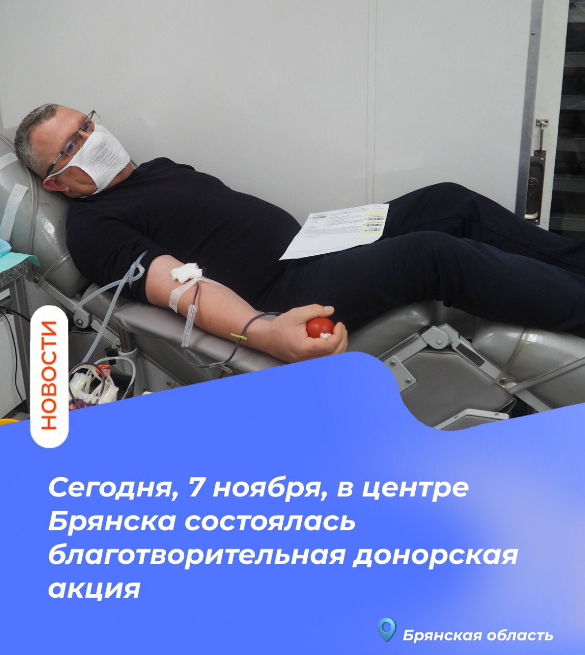 Сегодня, 7 ноября, в центре Брянска состоялась благотворительная донорская акция, приуроченная к знаковой дате в истории страны.