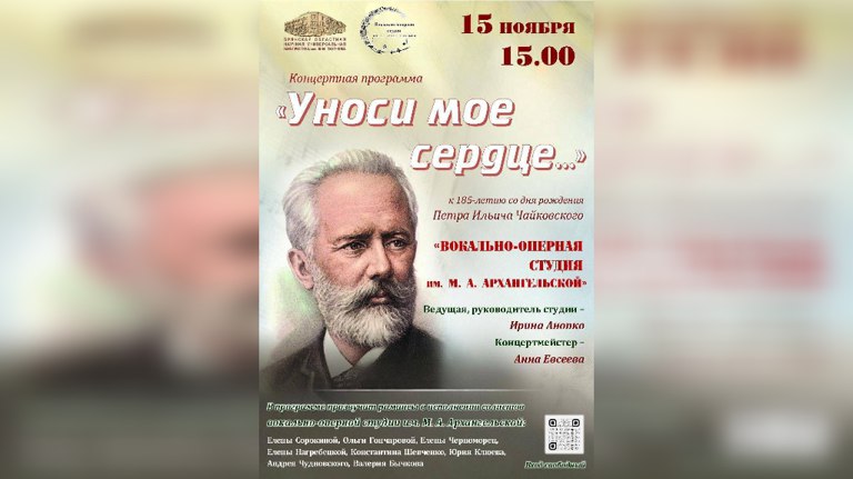 В Брянске пройдет концерт, посвященный 185-летию Петра Чайковского