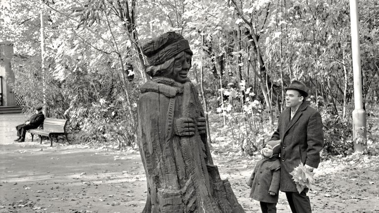 Брянцам показали архивное фото деревянной скульптуры «Емеля»