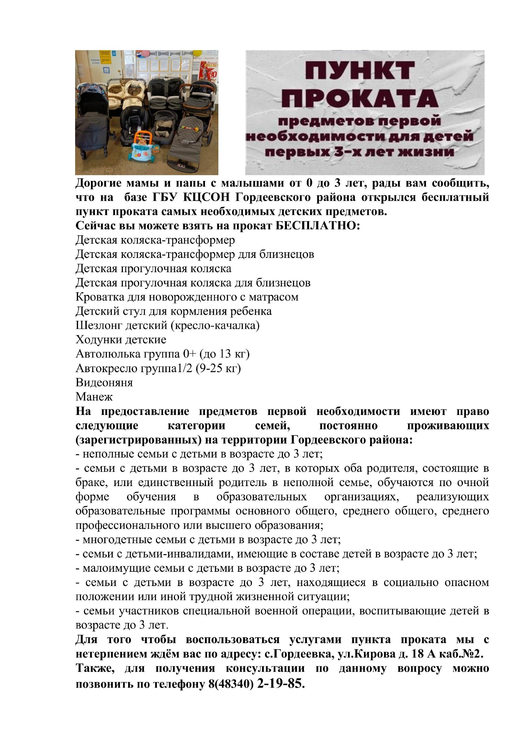 В ГБУ КЦСОН Гордеевского района открылся бесплатный пункт проката самых необходимых детских предметов.