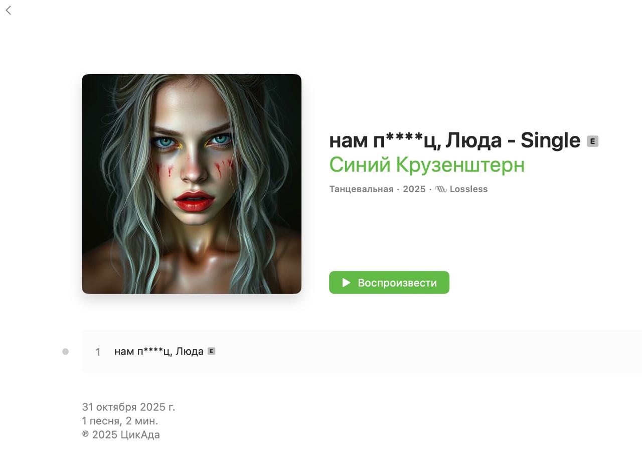 «Люду» мы обнаружили на «Яндекс Музыке», на Spotify и на Apple Music. При этом первые два сервиса вообще не парятся, оставили мат как есть, Apple Music поставил точки.