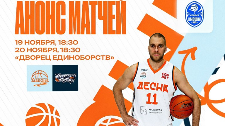 Брянский БК «Десна» дважды сыграет дома с «Металлург-Челбаскет» из Магнитогорска