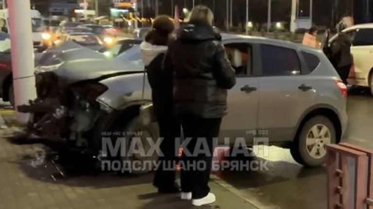 В Брянске на Кургане кроссовер столкнулся с легковушкой и врезался в столб