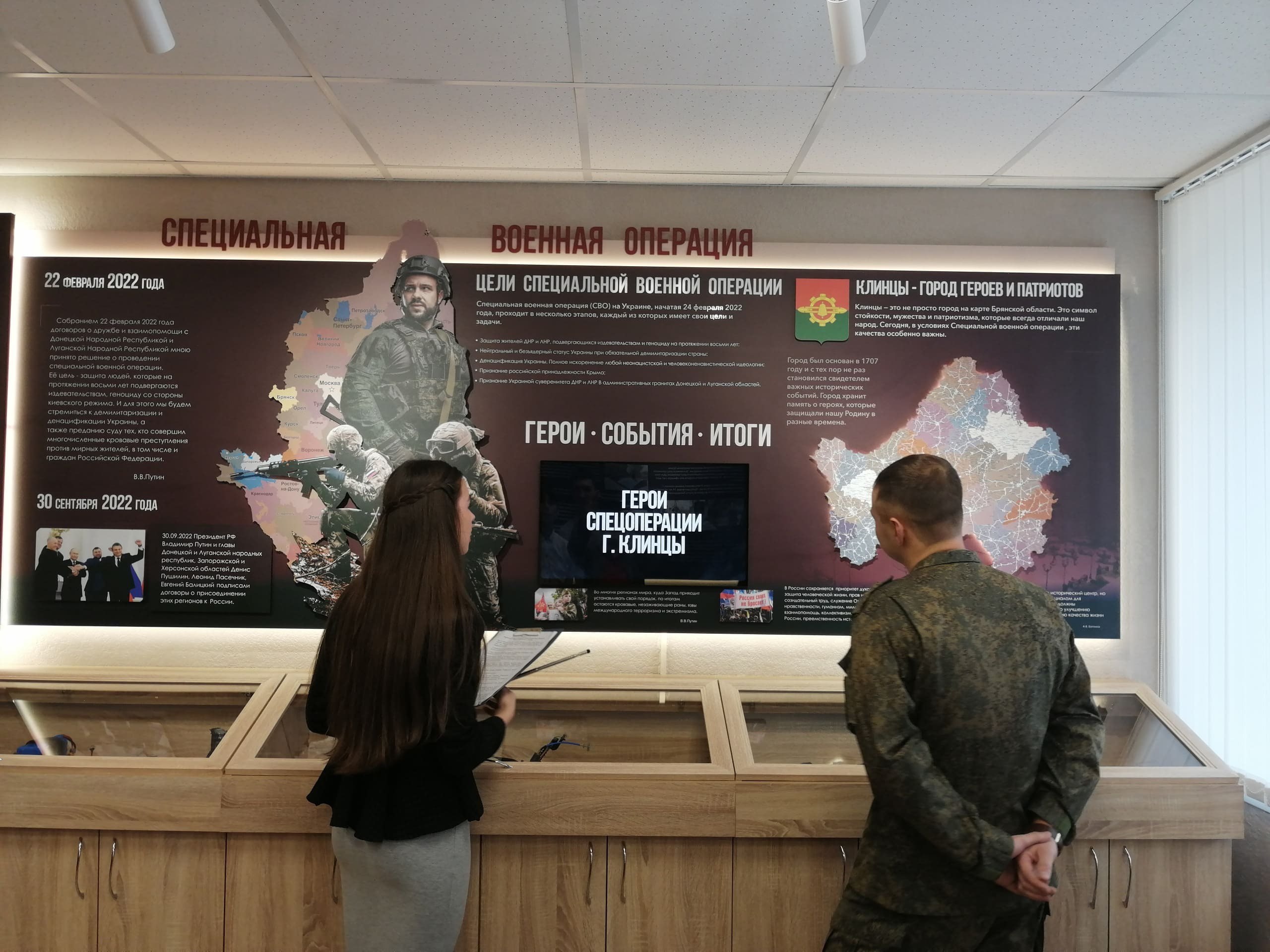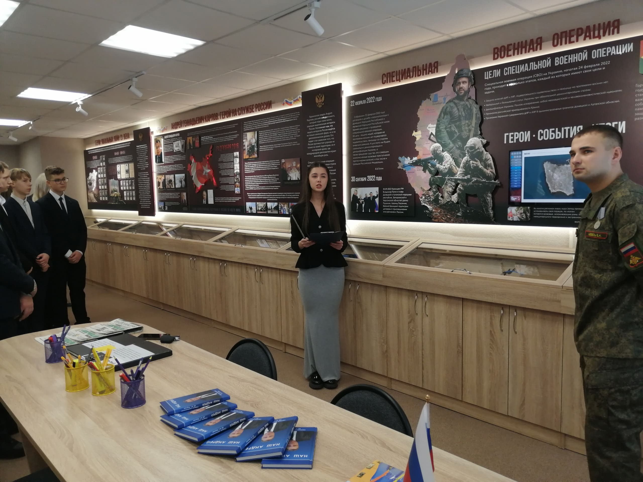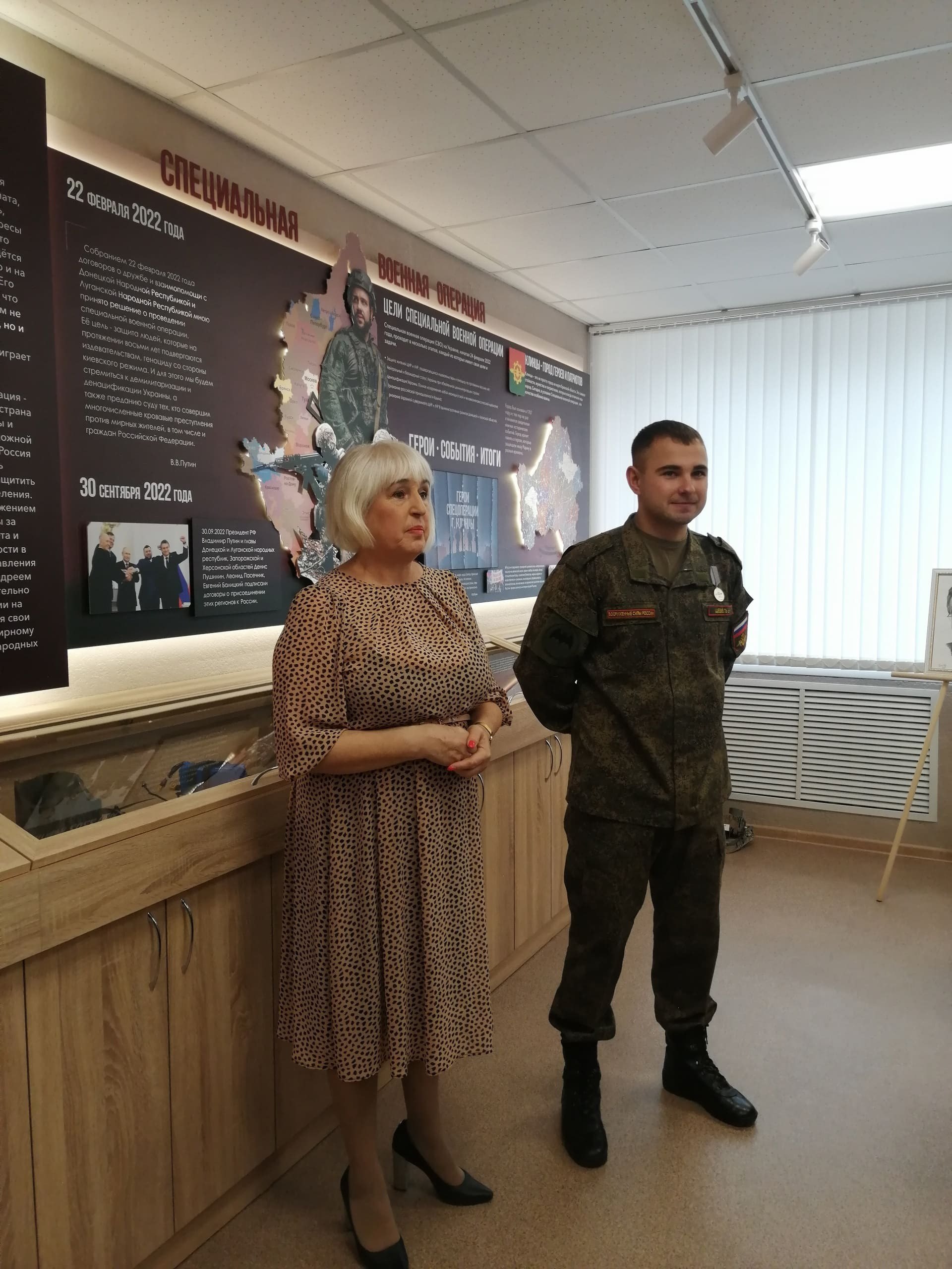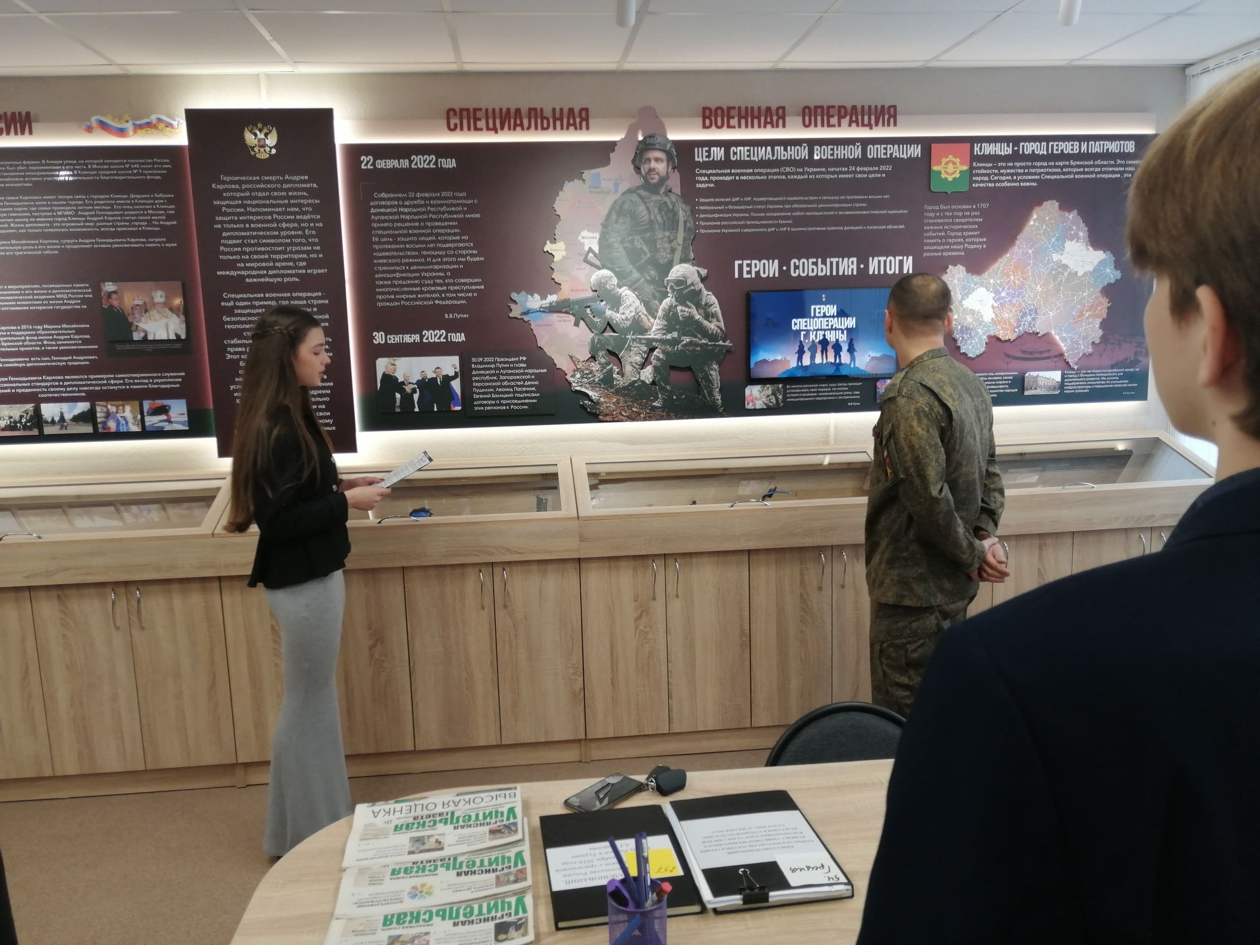 Ребята и гости ознакомились с интерактивной панелью, которая позволила наглядно проследить историю важных событий последних лет, а также ознакомиться с биографиями 49-ти героев, участников специальной военной операции.
