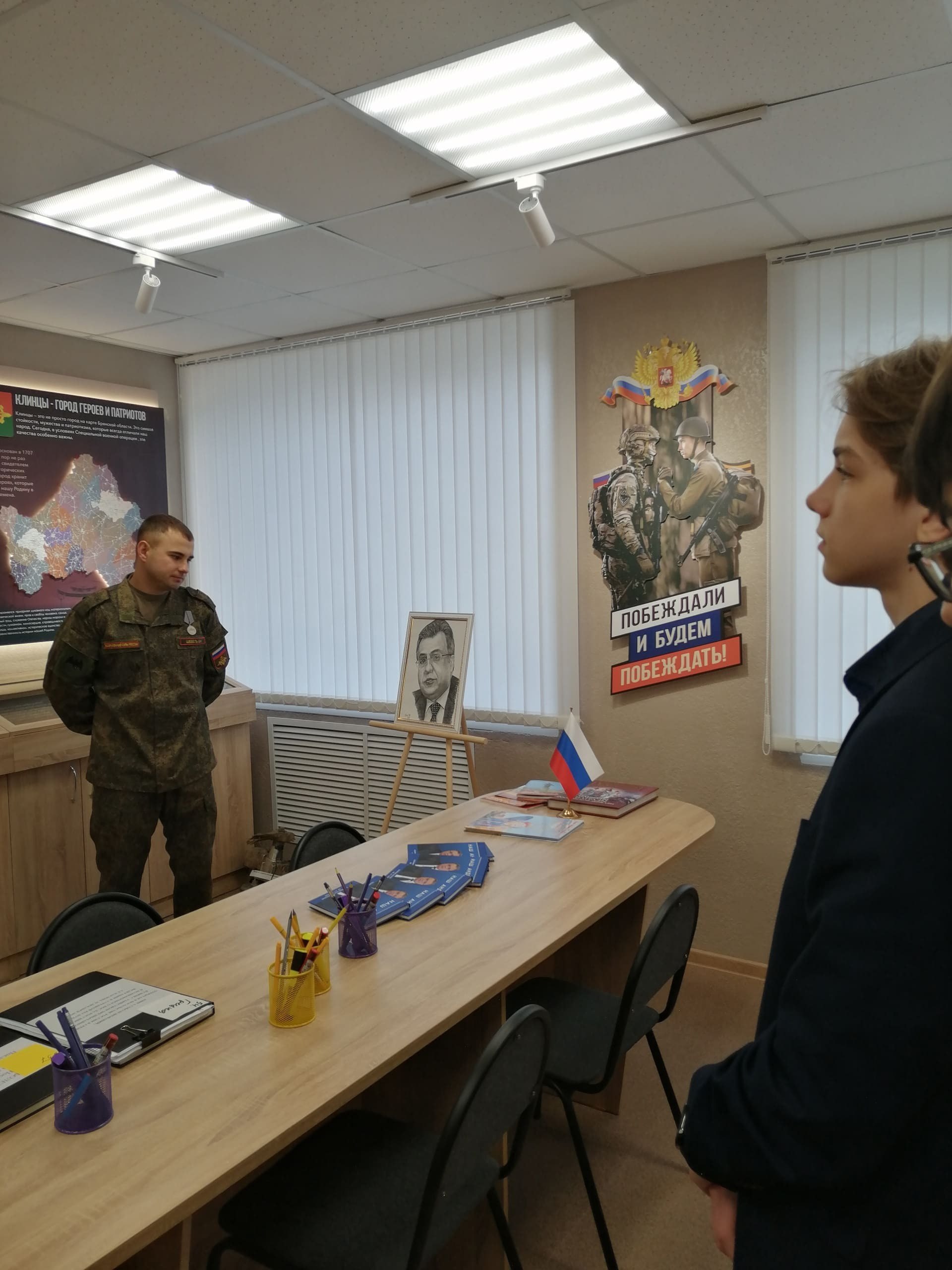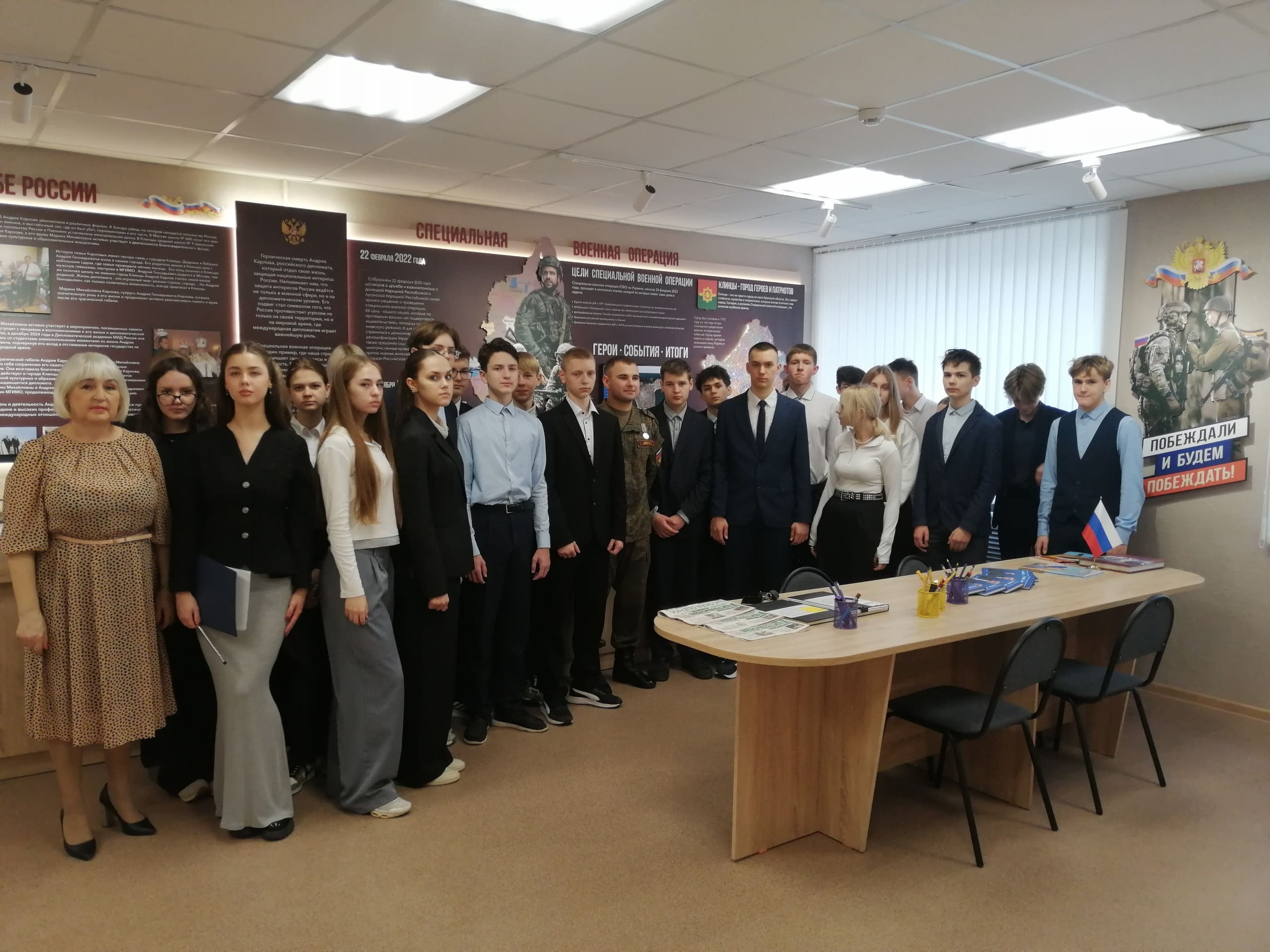 18 ноября 2025 года в МБОУ-СОШ №9 им. А.Г. Карлова в школьном музее «Живая нить времён» был организован и проведен патриотический час «Если, Родина зовет», посвящённый событиям специальной военной операции.