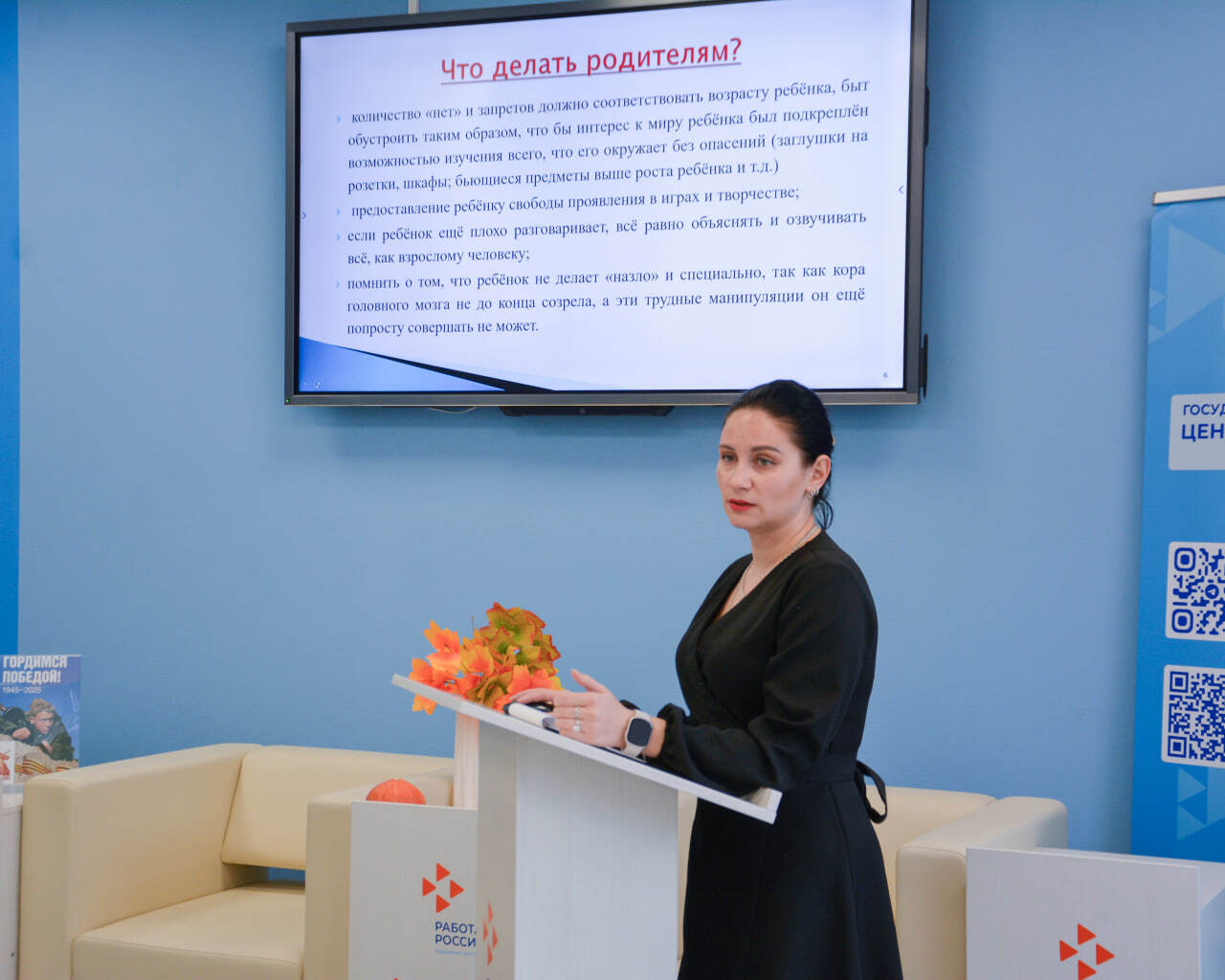 Во время своего выступления они подробно рассмотрели возрастные кризисы у детей, обсудили важность формирования психолого-педагогической компетентности родителей и подчеркнули роль ответственного родительства. Специалисты представили участницам современные методы и подходы к созданию благоприятной социальной среды дома, способствующей всестороннему развитию ребенка. Проведенное мероприятие позволило участницам повысить свой профессиональный уровень и расширить знания в области детской кризисной психологии. А в конце встречи спикеры предложили мамочкам пройти небольшой практикум по детско-родительским отношениям.