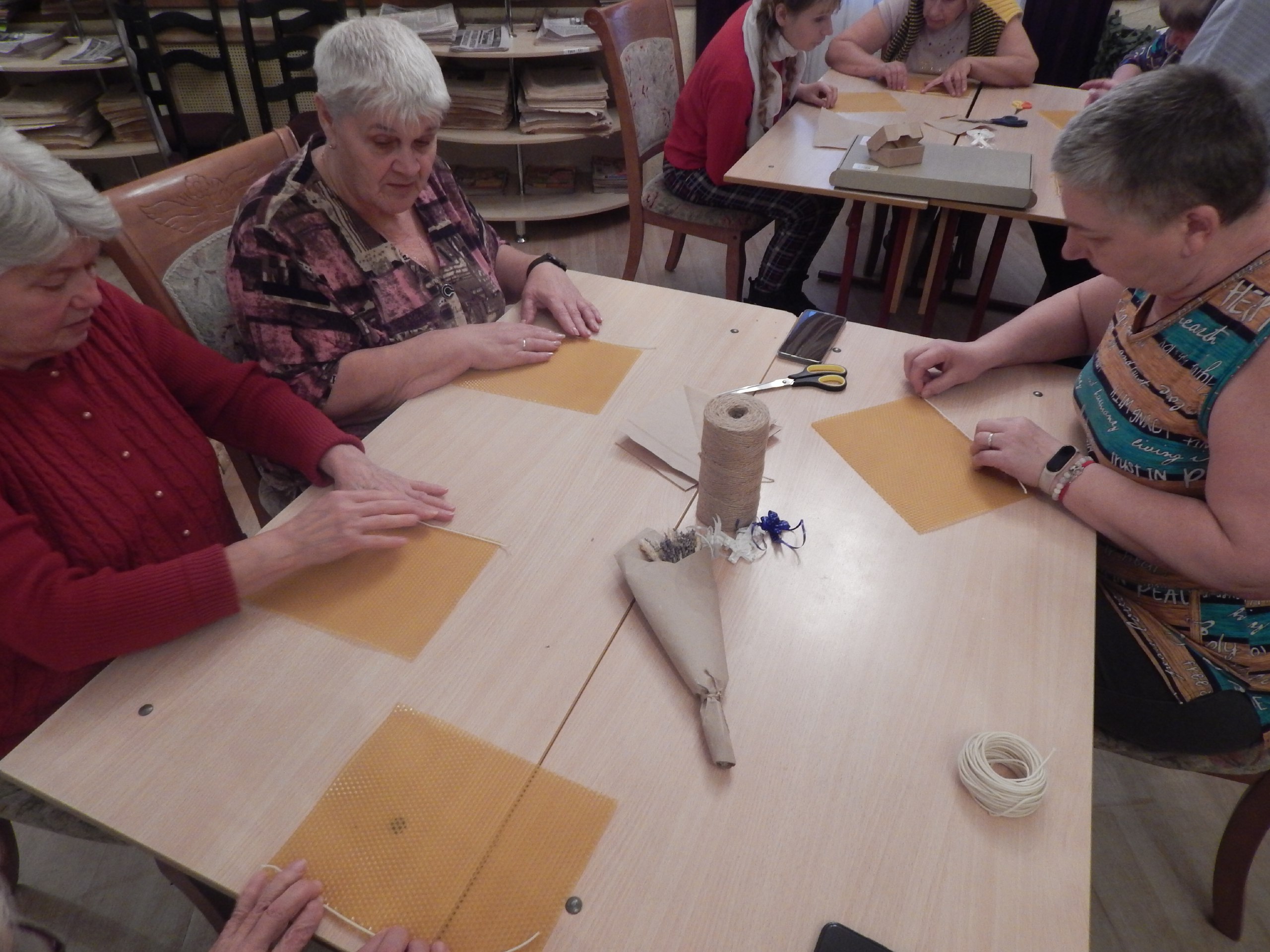 В краеведческой библиотеке им. А.Ф. Землянского для ГБУ КЦСОН г. Клинцы и Клинцовского района прошел увлекательный мастер-класс «Свечи из вощины».