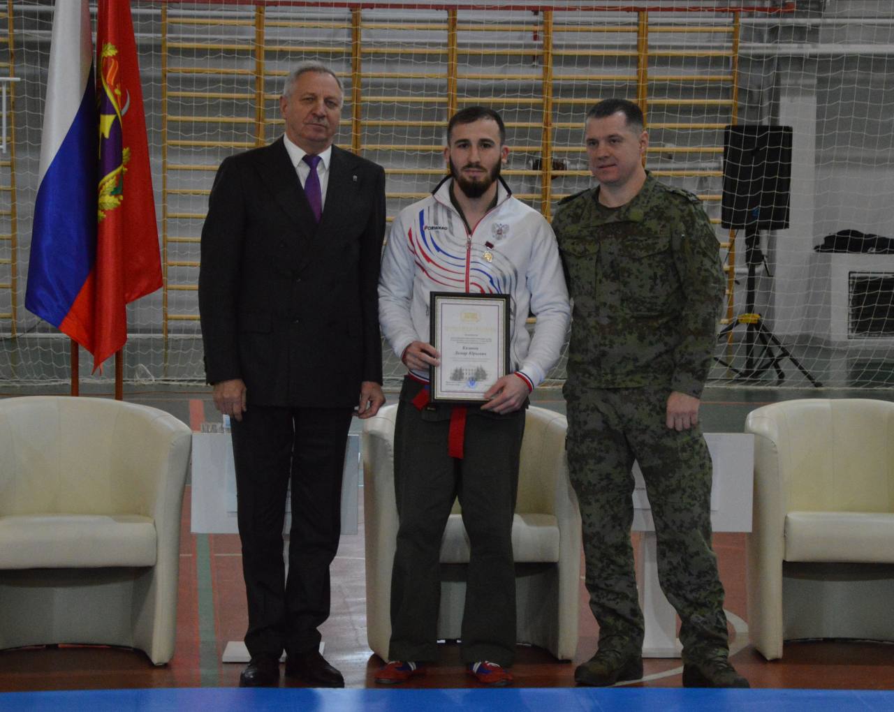 Это знаменательное событие собрало множество гостей, представителей власти, учащихся спортивных школ, военнослужащих и жителей округа, чтобы отдать дань уважения выдающемуся спортсмену, завоевавшему золотую медаль на Чемпионате Мира по рукопашному бою в Рязани (6-9 ноября 2025 года).