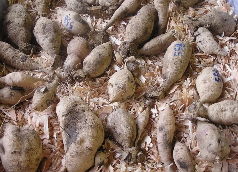 Перед тем как аккуратно убирать клубни, нужно обрезать стебли на высоту 5-10 см и осторожно встряхнуть лишнюю землю, избегая мытья водой. Затем необходимо продезинфицировать клубни с помощью подходящих средств, таких как Фитоспорин или марганцовка. После этого их следует высушить в теплом и хорошо проветриваемом помещении в течение 7-10 дней. При наличии повреждений желательно обрезать их до здоровой ткани и обрабатывать золой или толченым углем.
