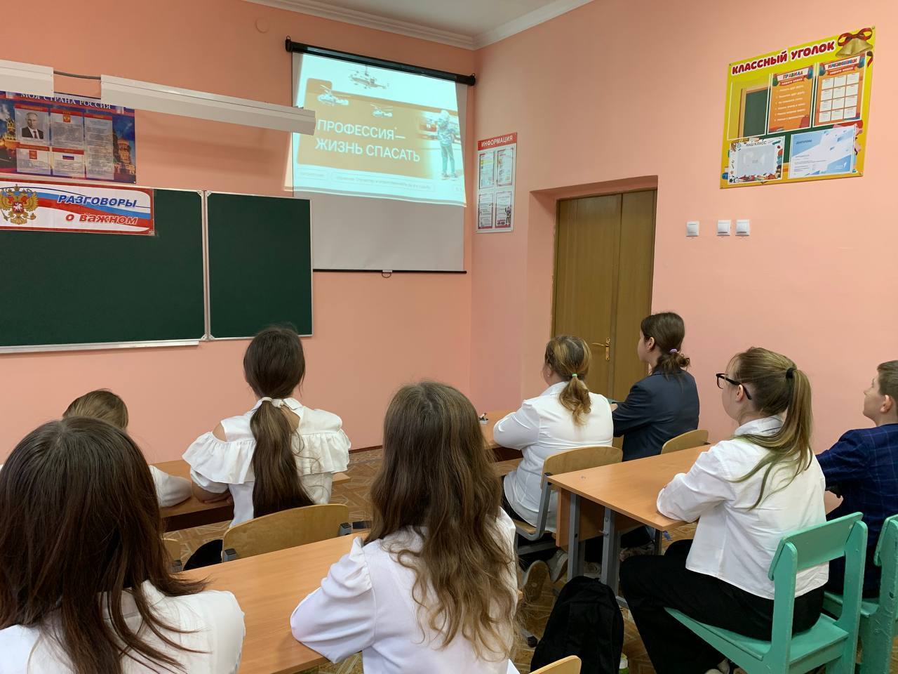 В ходе беседы обучающиеся познакомились с одной из ключевых для государства и общества профессий, а также основными функциями Министерства Российской Федерации по делам гражданской обороны, чрезвычайным ситуациям и ликвидации последствий стихийных бедствий (МЧС России).