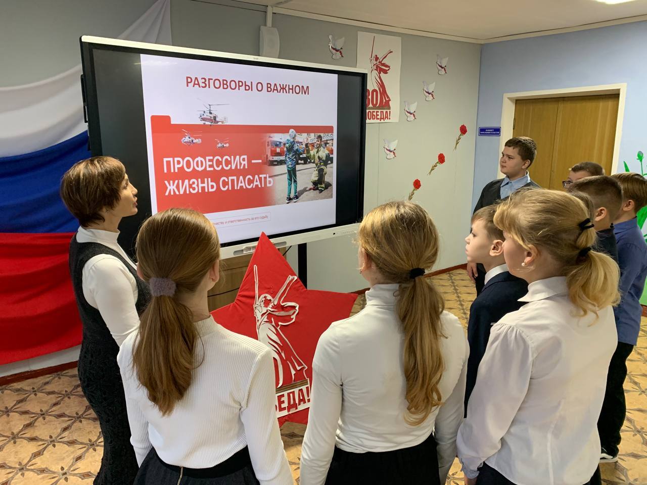 Тема занятия «Профессия — жизнь спасать». Его целью обозначено формирование у школьников представления о ценности человеческой жизни, значимости милосердия и взаимопомощи.