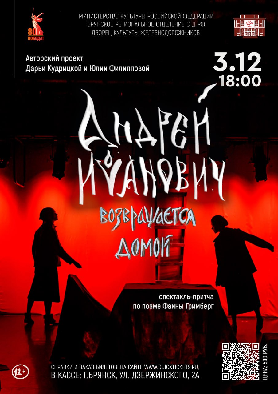 3 декабря в 18.00 на сцене Дворца культуры железнодорожников состоится показ авторского спектакля Дарьи Кудрицкой и Юлии Филипповой