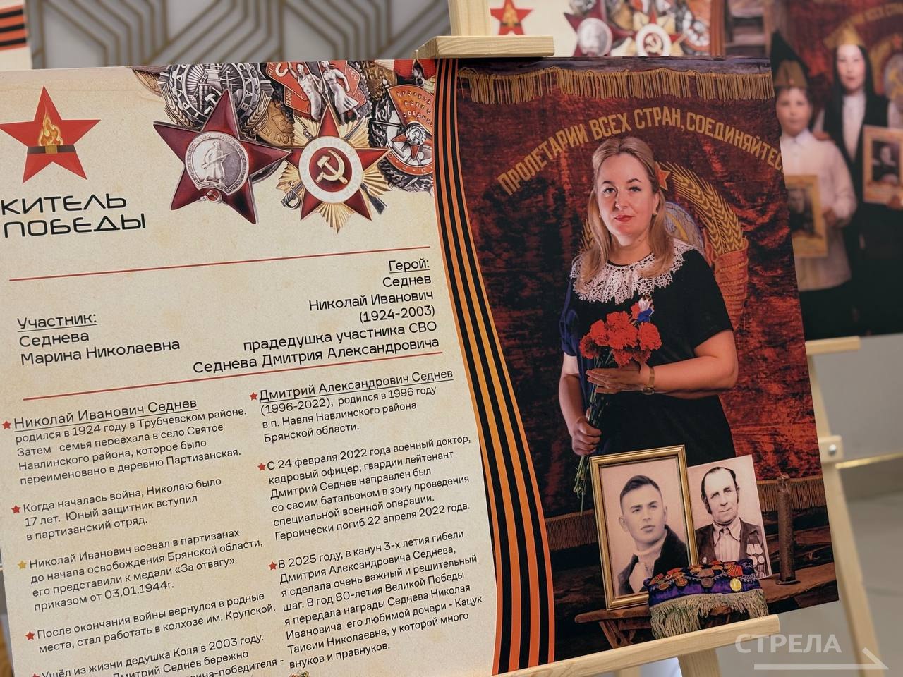 Гостей встретили выставочные проекты «Китель Победы» Комитета семей воинов Отечества Брянской области и «Семья защитников Отечества» филиала фонда «Защитники Отечества».