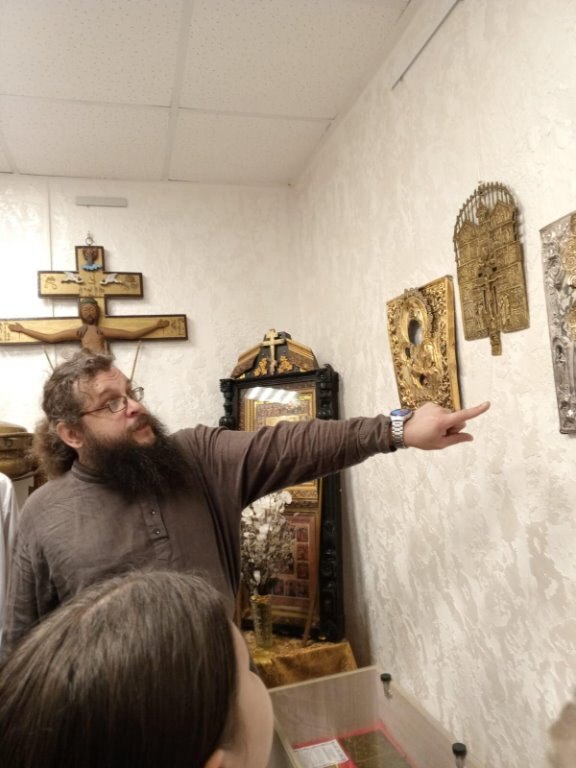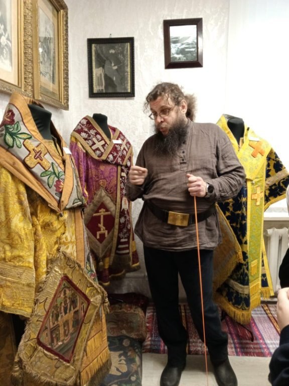 Библиотекарь провела ребят по залам музея, где настоятель Преображенского собора, отец Михаил, рассказал им о быте старообрядцев, показал редкие книги, напечатанные по особой клинцовской технологии.