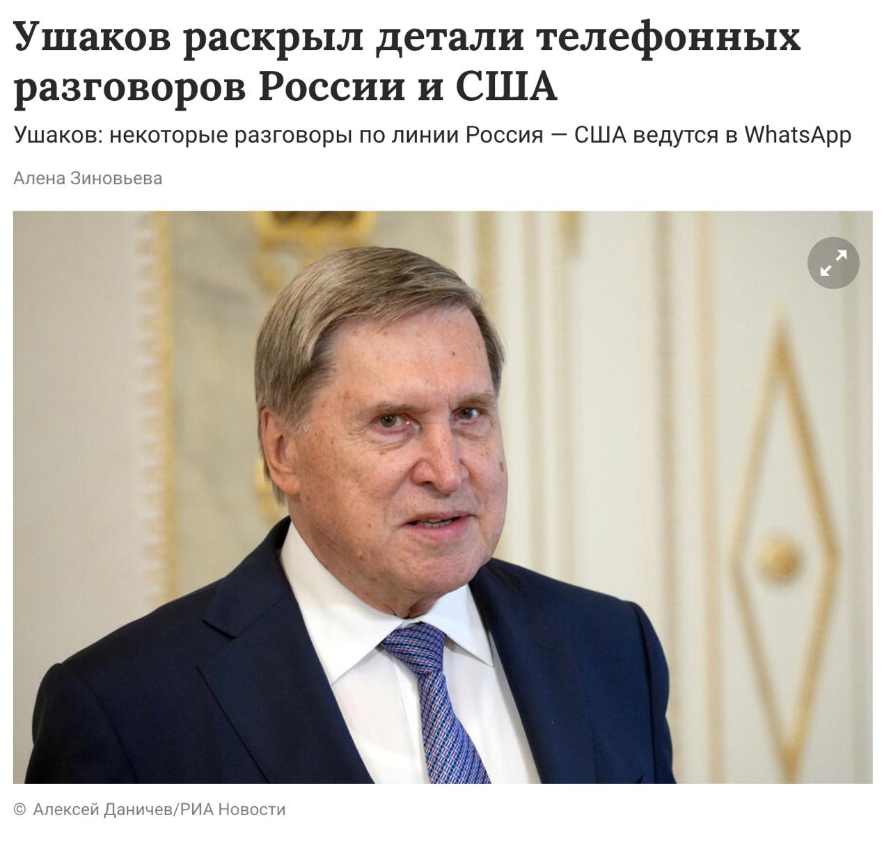 А разговаривал бы Ушаков с Уиткоффом по Max’у, никаких утечек Bloomberg бы не опубликовал.