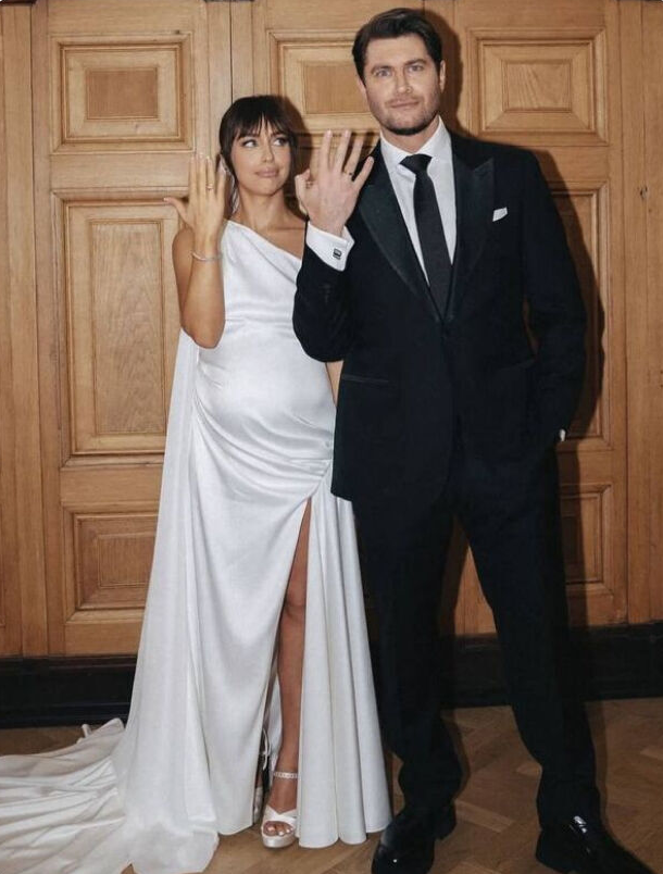 Февраль 2025 года ознаменовался бракосочетанием певицы Мари Крамбрери и популярного блогера Дава. Совсем скоро после свадьбы пара объявила о своем ожидании ребенка, что добавило в событие особую нотку. На своем торжестве невеста выбрала белоснежное длинное платье с элегантным разрезом и шлейфом. Несмотря на свое «интересное положение», она не побоялась надеть туфли на высоких каблуках, добавив образу уверенности и стиля.