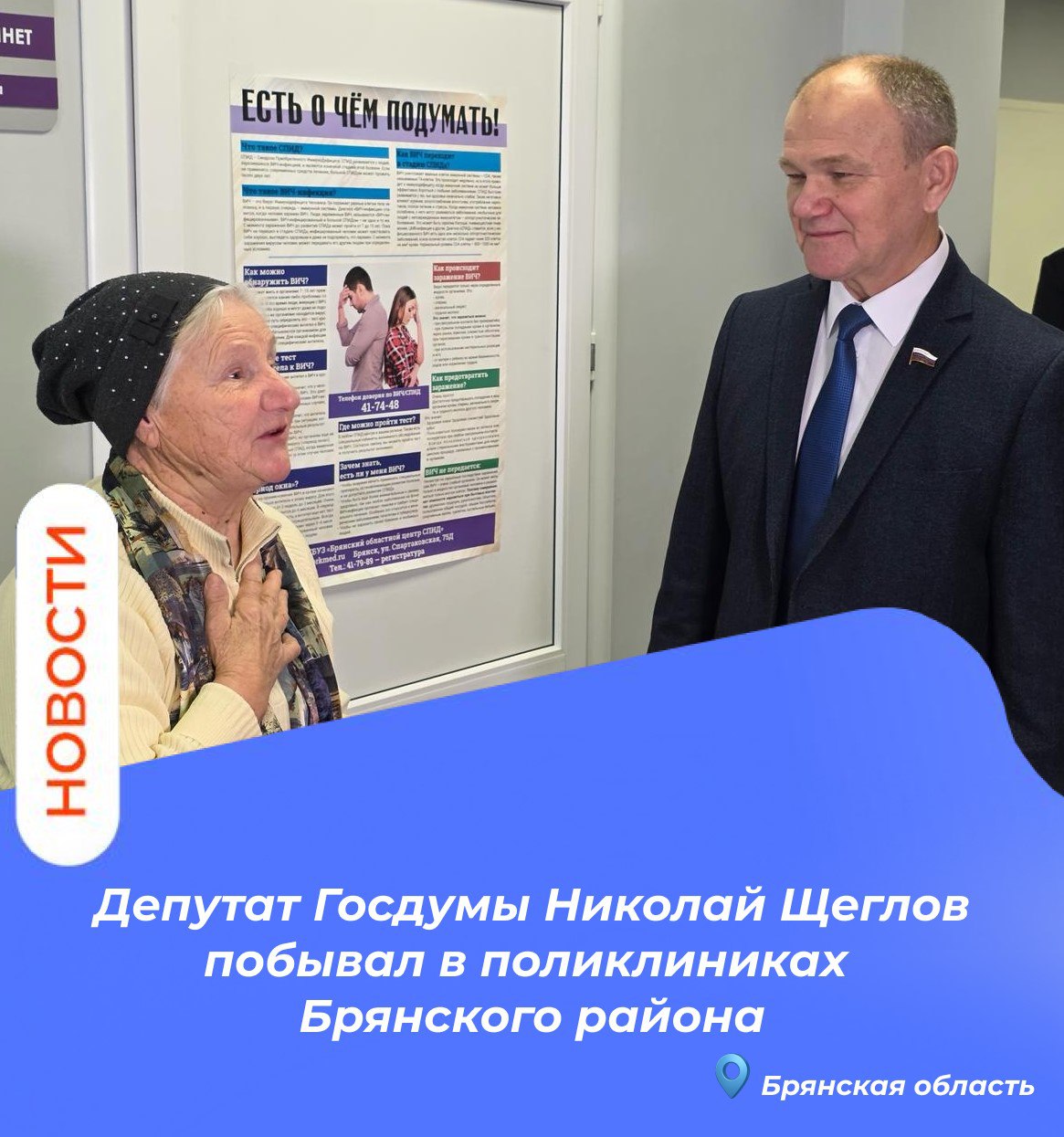 Сегодня в рамках региональной недели депутат Государственной Думы РФ, член Комитета по охране здоровья Николай Щеглов совместно с руководством района и активом партии "Единая Россия" посетил Поликлинику №2 и Добрунскую врачебную амбулаторию Брянской межрайонной больницы.