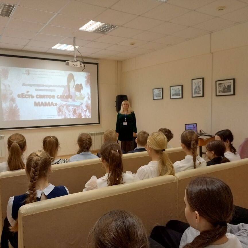 В преддверии этого замечательного праздника в детской библиотеке для шестиклассников СОШ №9 прошла литературно-музыкальная композиция под названием «Есть святое слово МАМА».