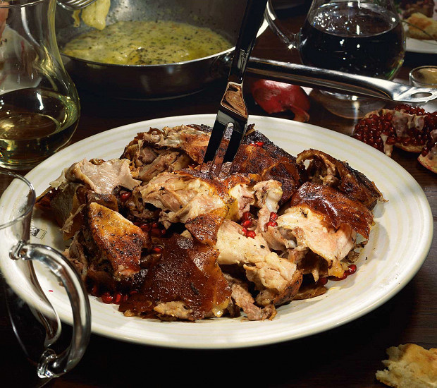 Подготовка поросенка: Тщательно очистить и вымыть потрошеного поросенка. Затем его надо обильно натереть солью и аджикой как снаружи, так и внутри, чтобы мясо пропиталось ароматом специи.Запекание: Разогреть духовку до 200 градусов Цельсия. Уложить поросенка на противень и запекать в течение 1,5 часов. Важно периодически открывать духовку и поливать поросенка выделяющимся жиром или смазывать сливочным маслом, чтобы добиться золотистой корочки.Проверка готовности: Определить готовность поросенка, проткнув его в самой толстой части шеи: если сок прозрачен, блюдо готово. Достать из духовки и дать немного остыть.Подача: Разрезать готового поросенка на небольшие куски и выложить их горкой на большое блюдо. Украсить зернами граната, которые добавят ярких нот вкуса. Данное блюдо лучше всего подавать с ткемали, погружая в соус кусочки мяса.Такой жареный поросенок станет настоящим хитом на любом празднике. Удивите своих гостей и создайте незабываемую атмосферу за столом с этим великолепным рецептом!