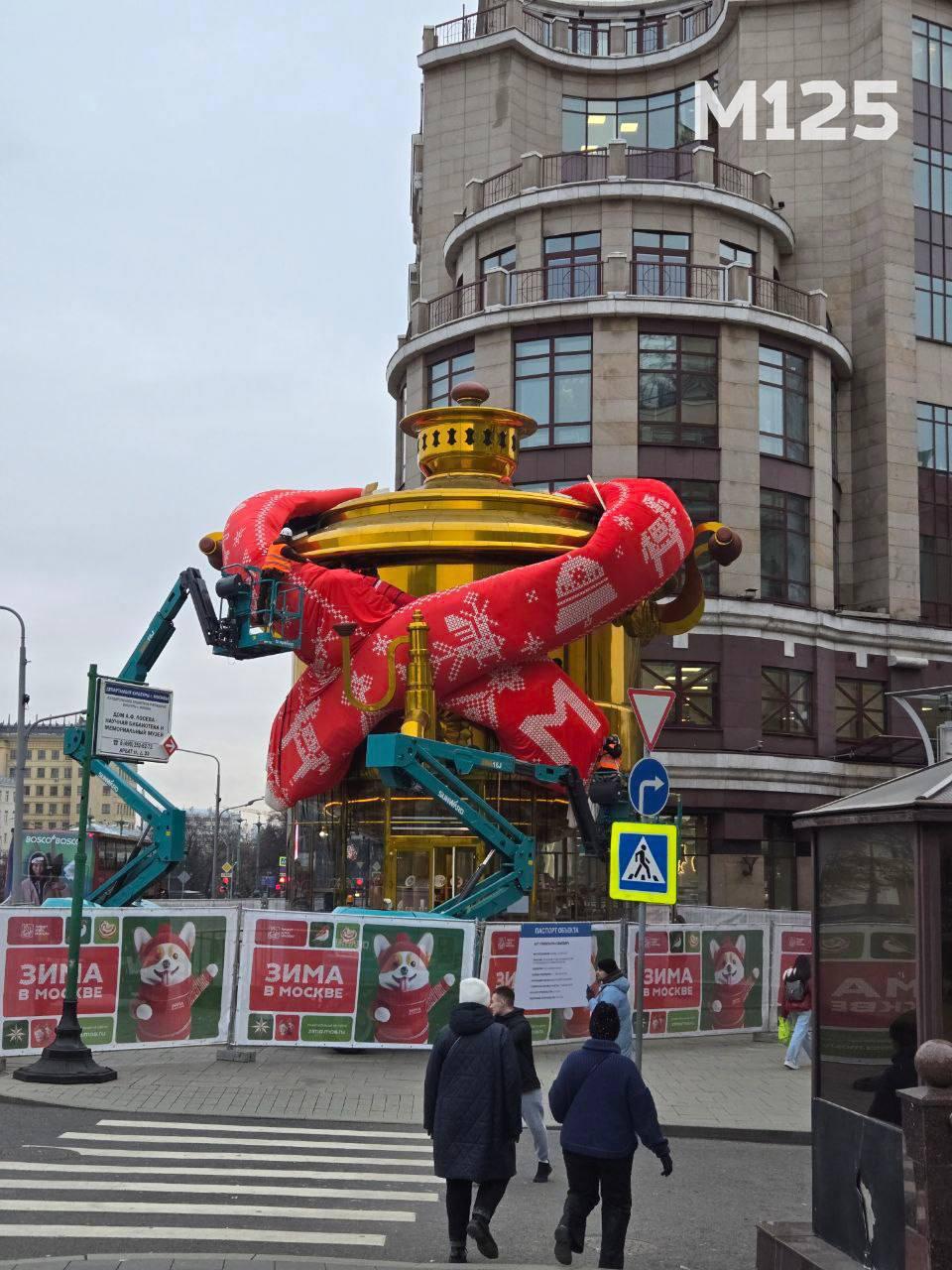 Столицу вовсю украшают. Самовар согревают шарфом на старом Арбате. Новогодняя атмосфера царит на Кузнецком мосту и в Камергерском переулке.