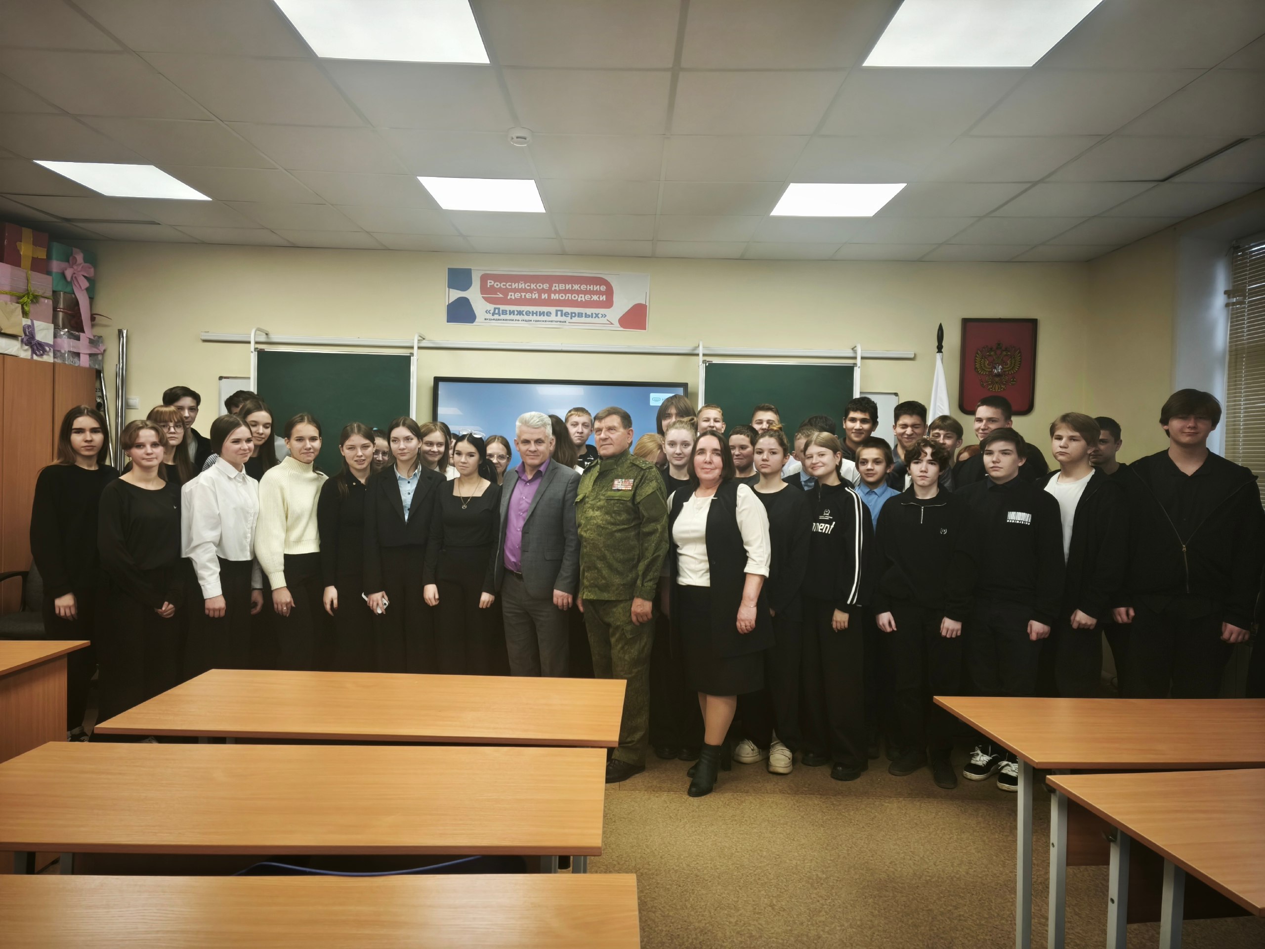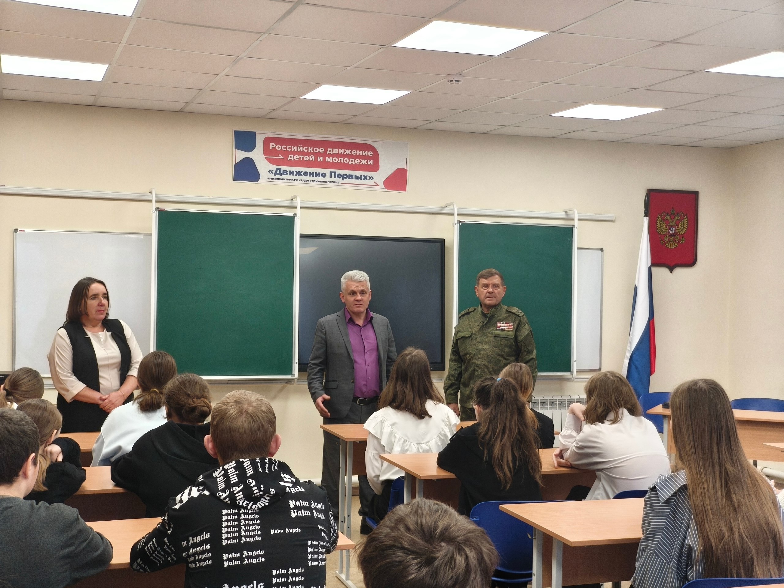 В день неизвестного солдата в МБОУ «Мглинская СОШ №1» прошел классный час, посвященный патриотическому воспитанию подрастающего поколения. Учащиеся школы встретились с председателем Калужской областной общественной организации Всероссийской общественной организации ветеранов (пенсионеров) войны, труда, Вооруженных сил и правоохранительных органов, членом комиссии по вопросам добровольчества и патриотическому воспитанию Общественной палаты Калужской области Исаченко Анатолием Михайловичем.