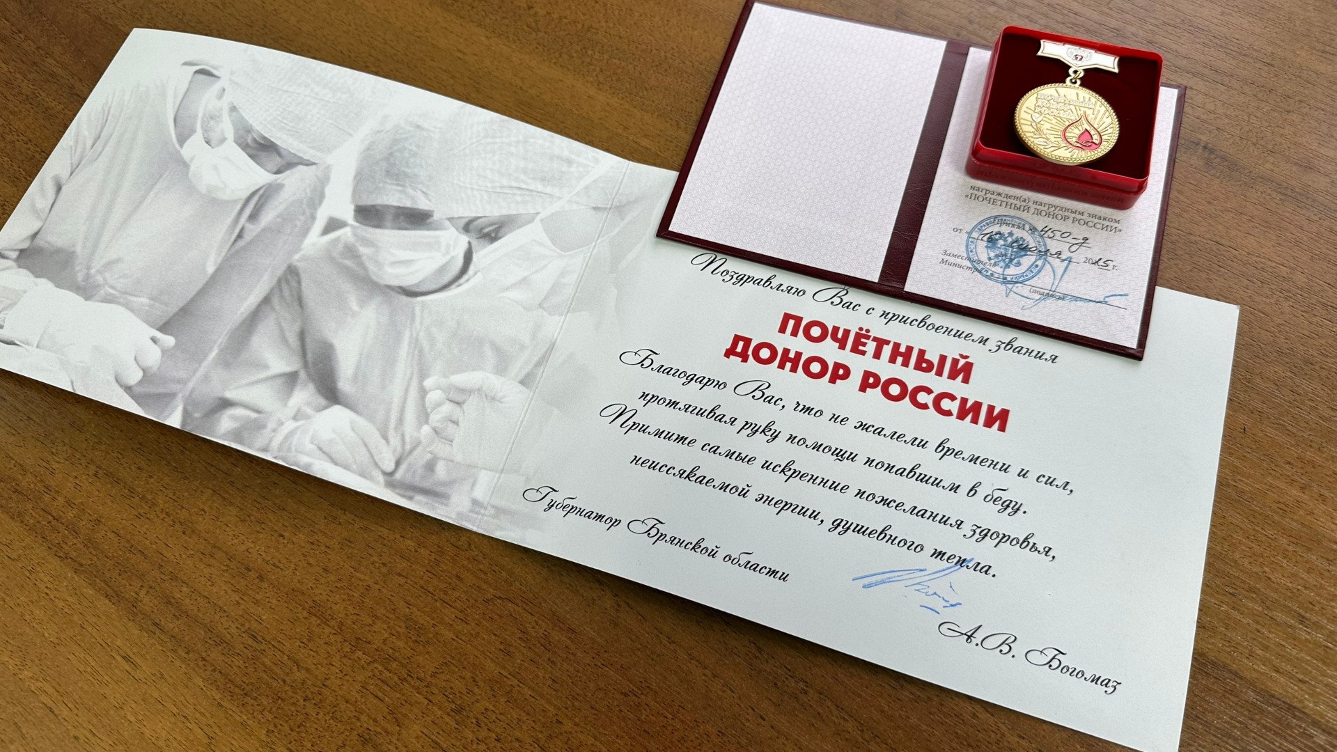 30 жителям Брянской области присвоено высокое звание "Почетный донор России". Соответствующие удостоверения и нагрудные знаки уже поступили на областную станцию переливания крови из Министерства здравоохранения РФ, готовые к вручению.