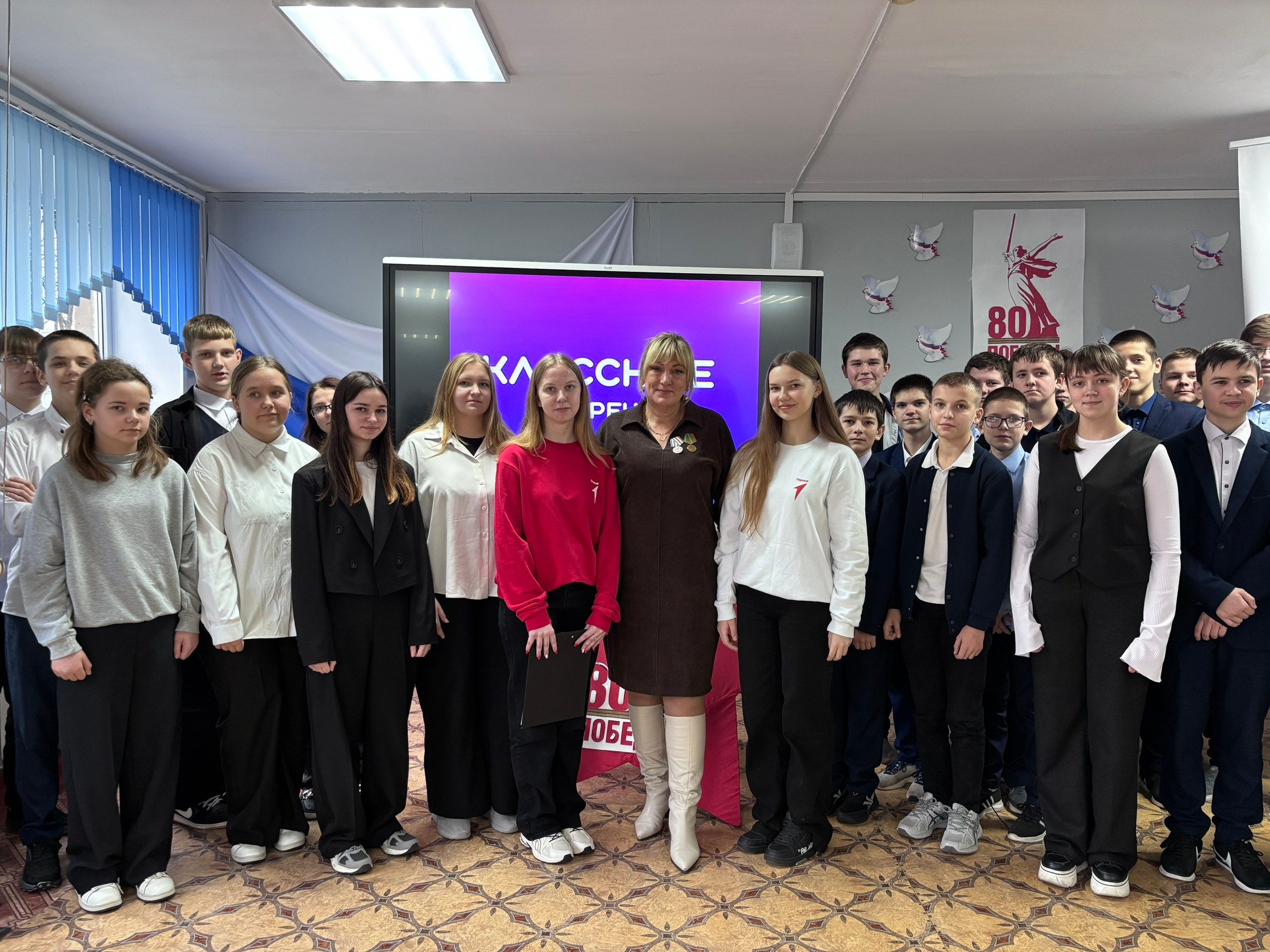 В МБОУ-Ардонской СОШ в преддверии Дня волонтёра состоялась Классная встреча с Татьяной Михайловной Ветровой, заведующей Отделением помощи семье, женщинам и детям, находящимся в трудной жизненной ситуации и руководителем волонтёрского центра плетения маскировочных сетей.