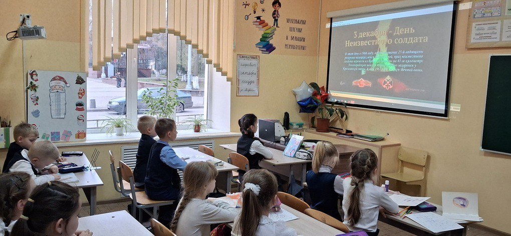 Обучающиеся на уроке мужества узнали о важности памяти о тех, кто отдал жизнь за Родину. Они познакомились с историей этого дня, узнали о памятниках и мемориалах, посвящённых неизвестным солдатам, о том, как люди ухаживают за этими местами.