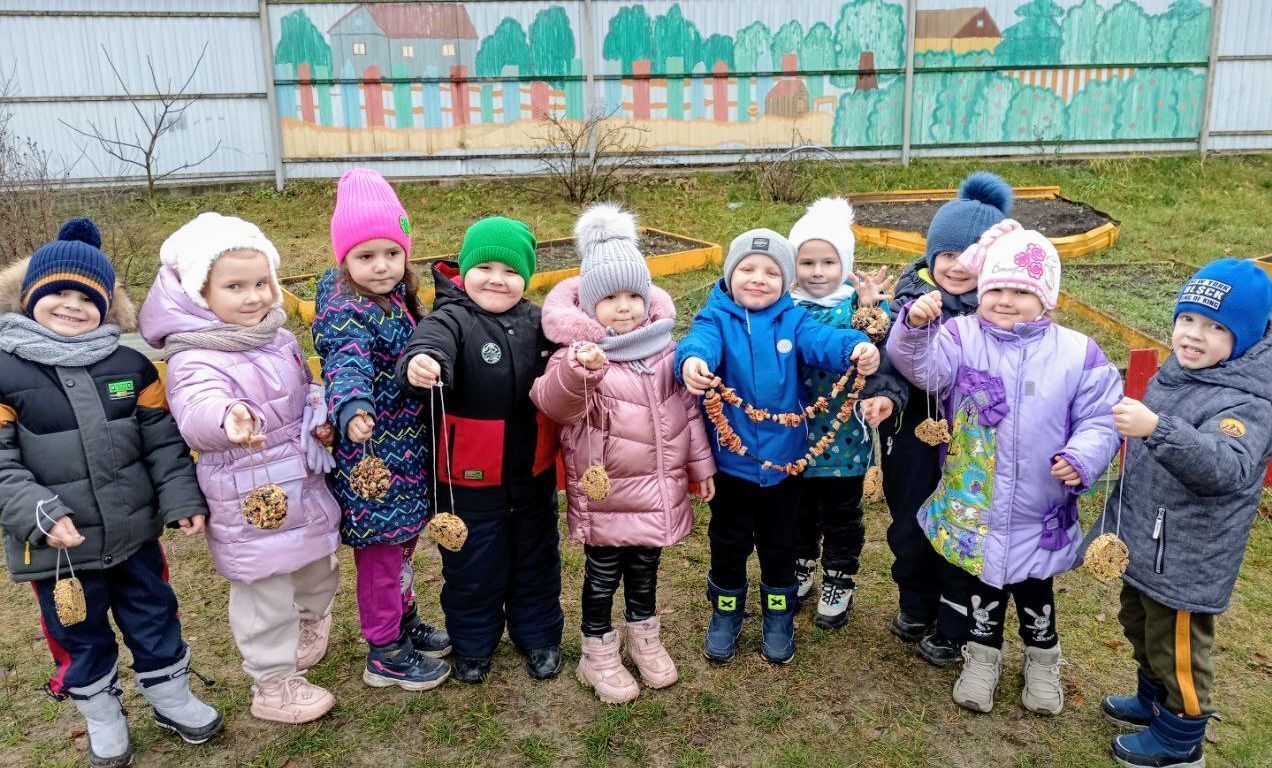 Уже многие кормушки заняли свое место на деревьях детского сада, а мы будем с радостью наблюдать, как к ним слетаются птицы, чтобы полакомиться угощениями и каждая крошка корма, положенная в кормушку маленькими добрыми руками, станет для них подарком и напоминанием о том, что есть люди, которые о них помнят и заботятся.