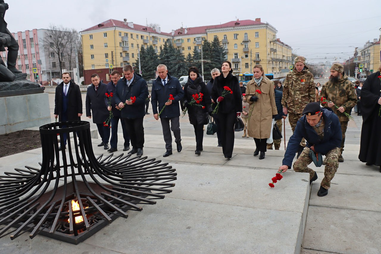 Участники мероприятия почтили память защитников Отечества, возложив цветы к Вечному огню на Площади партизан.