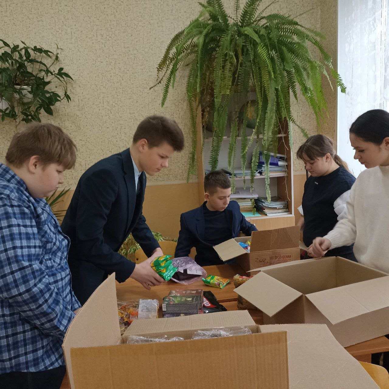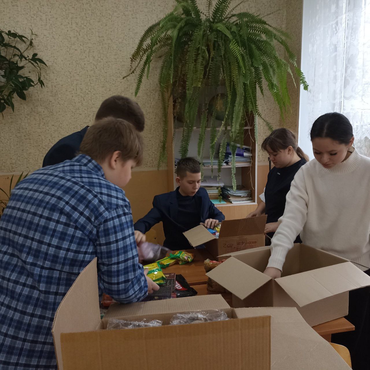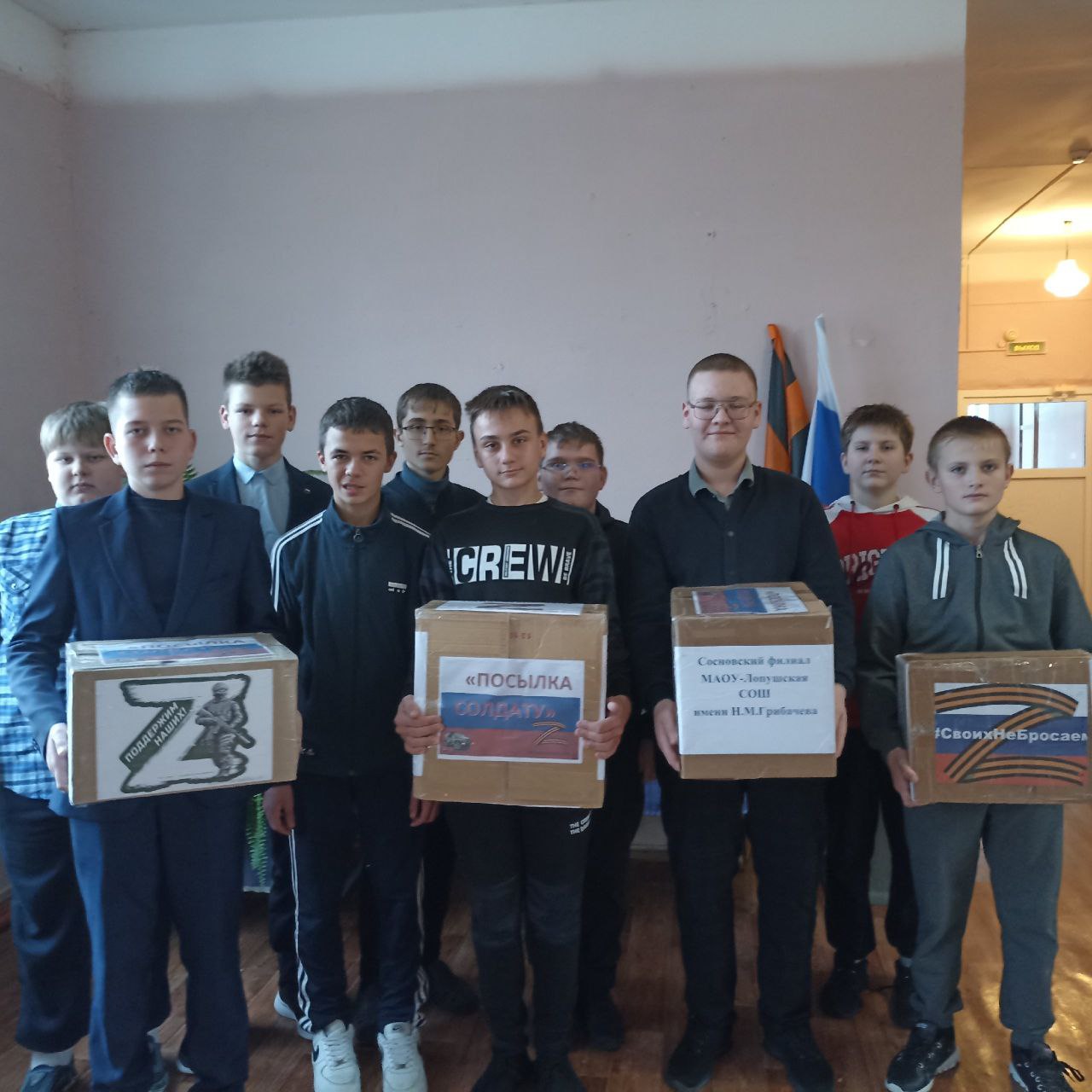 В предверии праздника ребята Сосновского филиала совместно с коллективом учителей и работников школы собрали посылки для участников специальной военной операции.