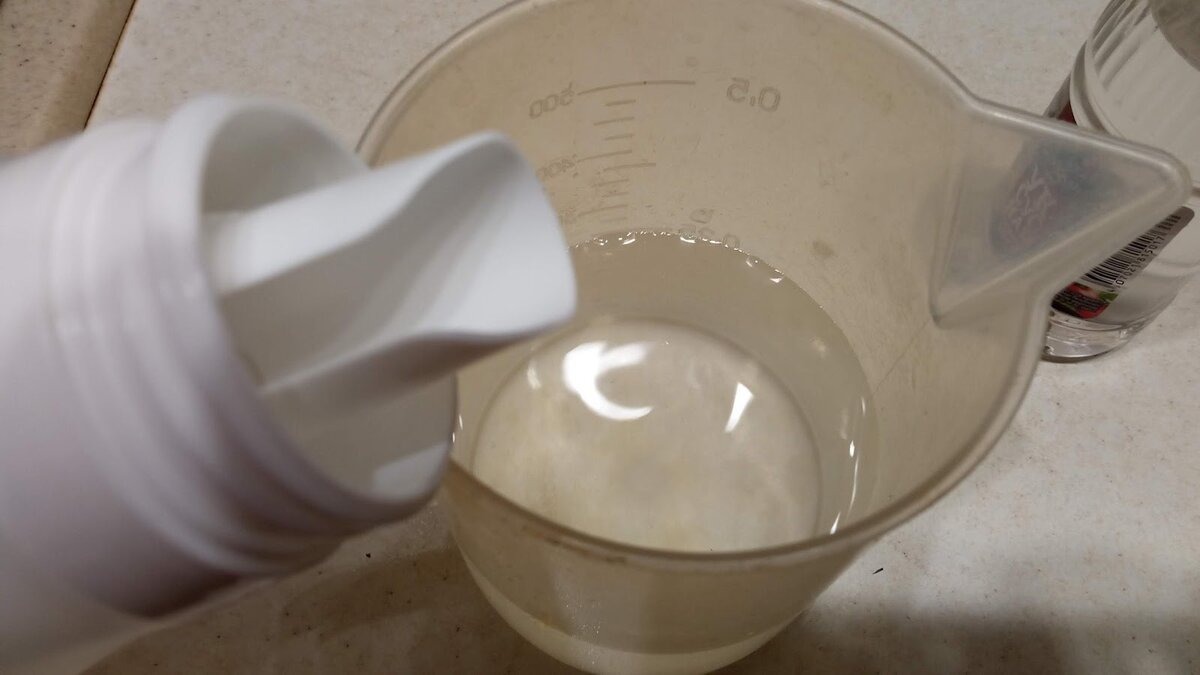 - 30 мл жидкого моющего средства (например, мыла для посуды или жидкого хозяйственного мыла);