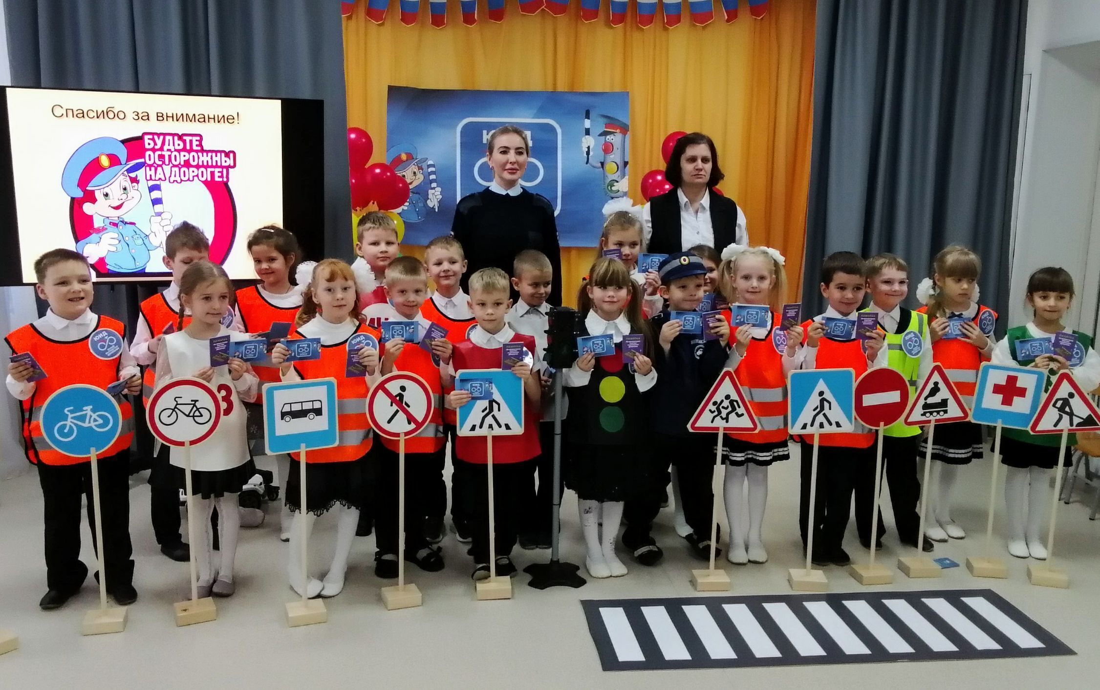 Программа мероприятия была насыщенной и интересной: познавательные игры, которые помогли закрепить знания о безопасности на дороге в игровой форме, торжественная клятва ЮИДовцев, где ребята с гордостью произнесли слова, обязуясь соблюдать правила дорожного движения и быть примером для других; веселый танец о соблюдении правил дорожного движения «Если с другом вышел в путь».