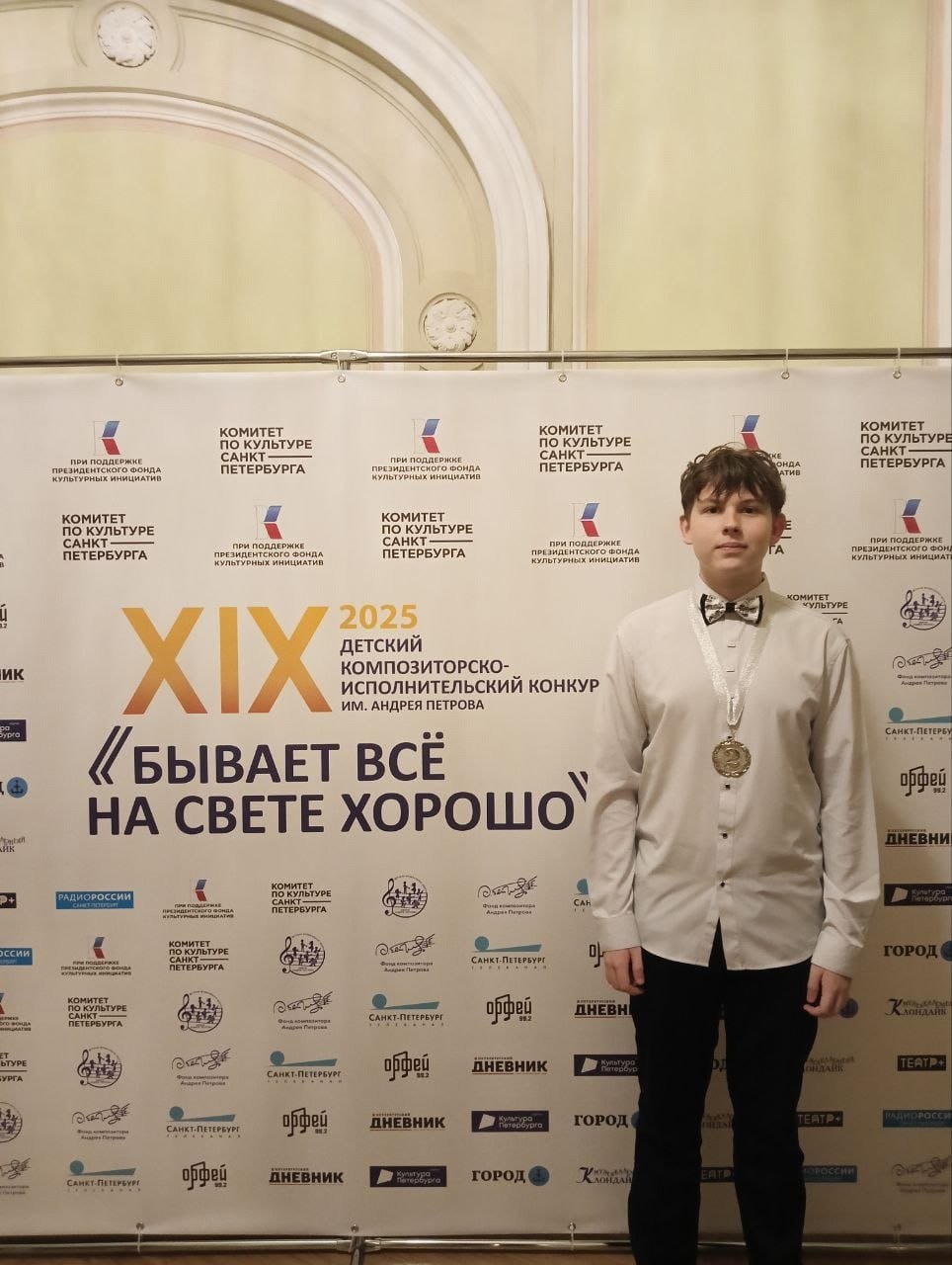 16 декабря 2025г. в г. Санкт- Петербурге учащийся ДШИ им. Е.М. Беляева Илья Гагарин (преп. Космачева В.П.) принял участие в Гала-концерте XIX Детского композиторско-исполнительского конкурса им. Андрея Петрова "Бывает все на свете хорошо".