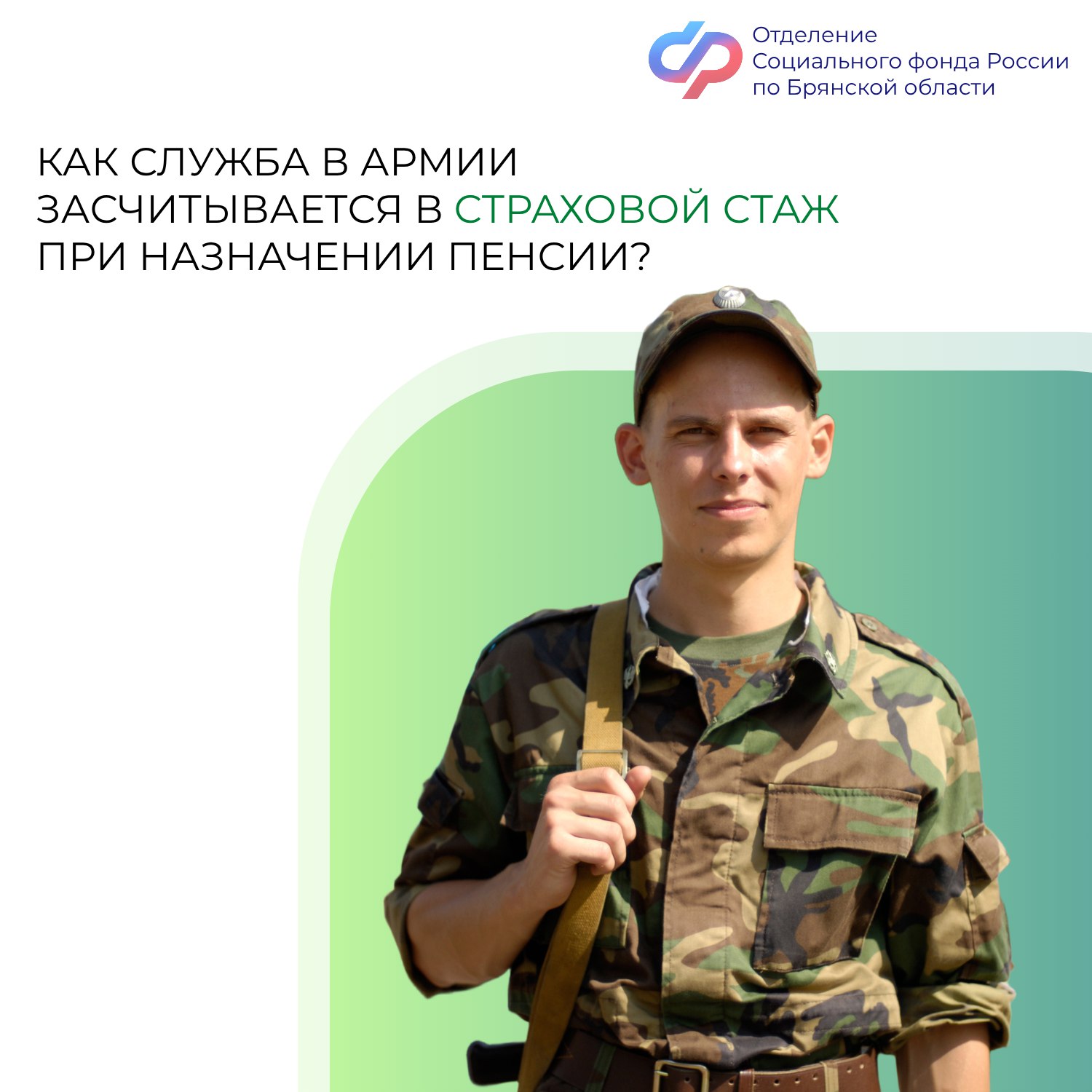 Отделение СФР по Брянской области реализует государственную программу по включению военной службы в армии по призыву при назначении страховой пенсии.